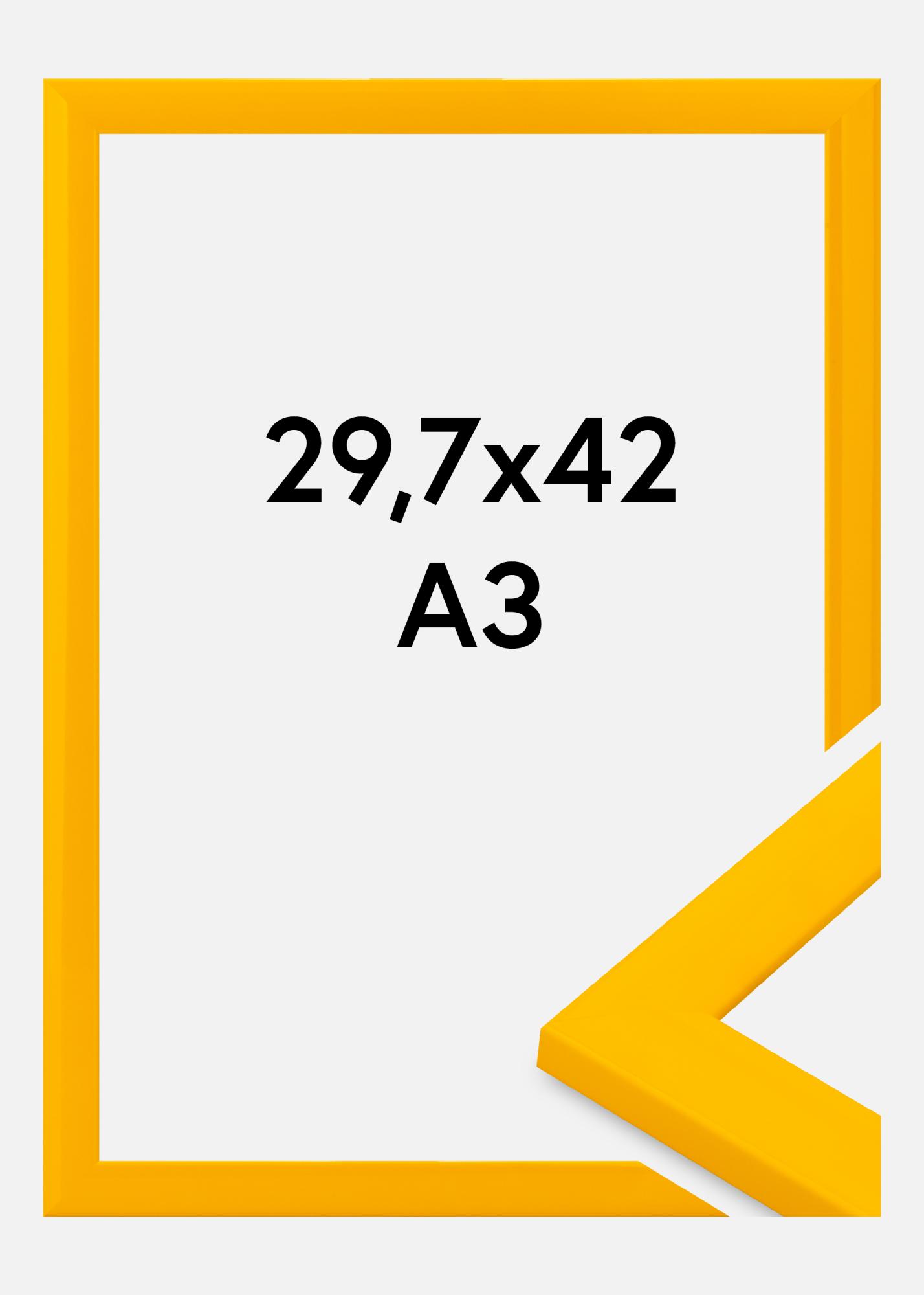 Ovaj Okvir za fotografije u jasnoj Žuta nijansi savršen je za davanje tvojim slikama živopisnog i modernog izraza. S veličinom od 29,7x42 cm, odlično odgovara za A3 motive, što ga čini idealnim za fotografije i postere. Sjajna površina i tanka profilna linija daju Okviru minimalistički izgled koji omogućuje da tvoj motiv bude u središtu pažnje.
