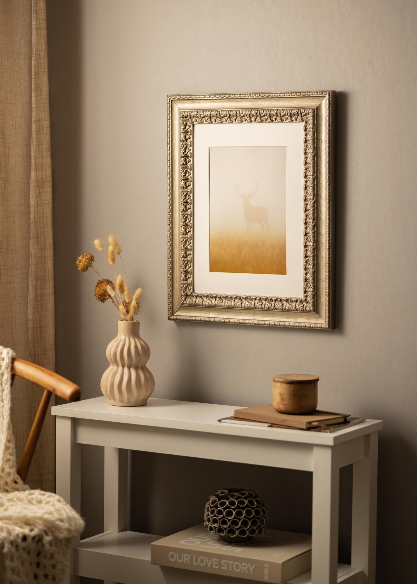 Okvir Drottningholm Silver III je elegantan foto okvir koji nudi sofisticiranu uokvirenost za vaše najdraže slike i umjetnička djela. Sa svojom prekrasnom srebrnom bojom i rubom okvira širine 68 mm, ovaj okvir za slike ostavlja impresivan dojam u svakoj prostoriji u kojoj se nalazi. Dubina okvira od 30 mm doprinosi njegovom robusnom osjećaju i čini ga stabilnim izborom za i mala i velika djela.