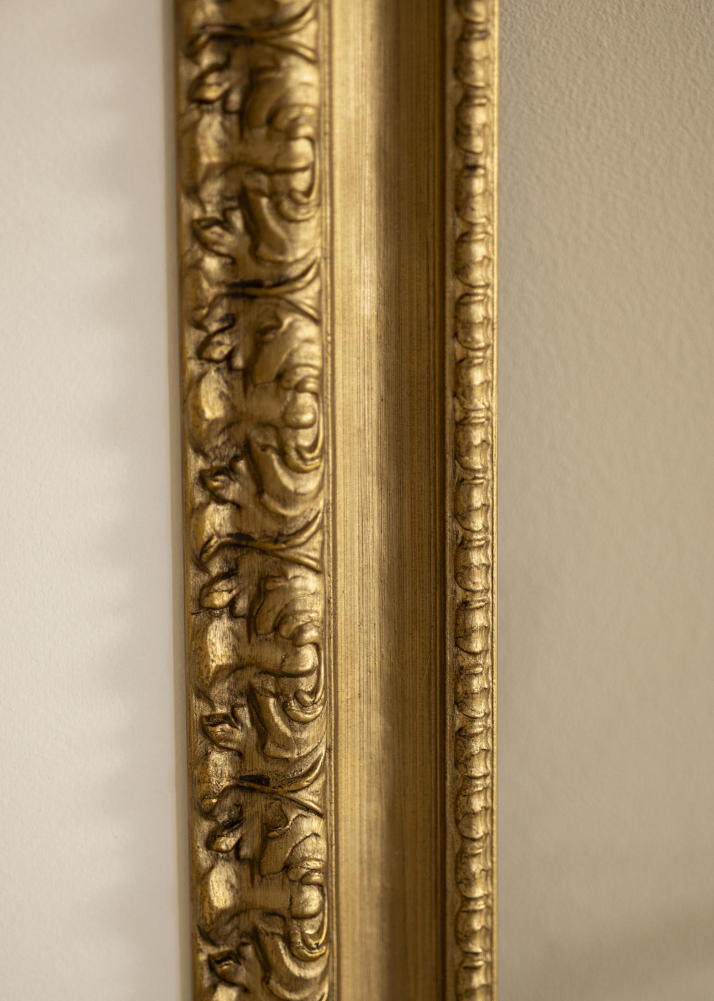 Okvir Drottningholm Zlato III je elegantan i profinjen okvir za fotografije koji vašim slikama daje kraljevski okvir. Sa svojim zlatnim završnim slojem i detaljno istesanim dekorom duž unutarnjeg ruba, ovaj okvir za slike postaje prekrasan dodatak bilo kojoj sobi. Mekano brušenje površine naglašava reljefni uzorak i daje okviru blago ostarjeli karakter, stvarajući osjećaj bezvremenske elegancije.