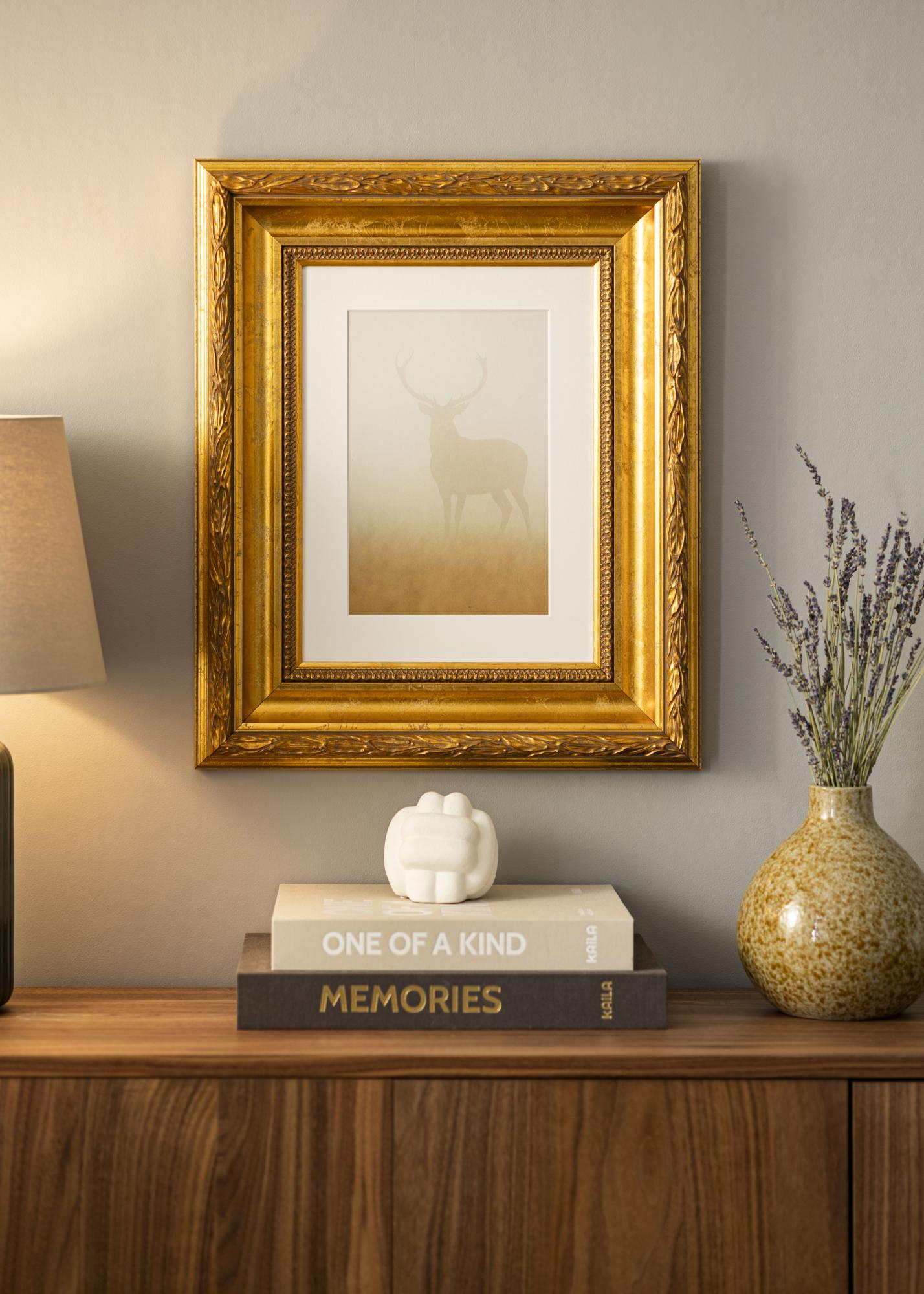 Okvir Egipat Ornament Gold je ekskluzivan okvir za fotografije koji vašim slikama daje osjećaj elegancije i bezvremenosti. Sa svojom dubokom, toplom nijansom starinskog zlata i dekorativnim detaljima, postaje prekrasan dodatak svakoj prostoriji. Ovaj okvir za slike savršen je za one koji svojim umjetničkim djelima ili fotografijama žele donijeti dodatnu dimenziju stila i klase.