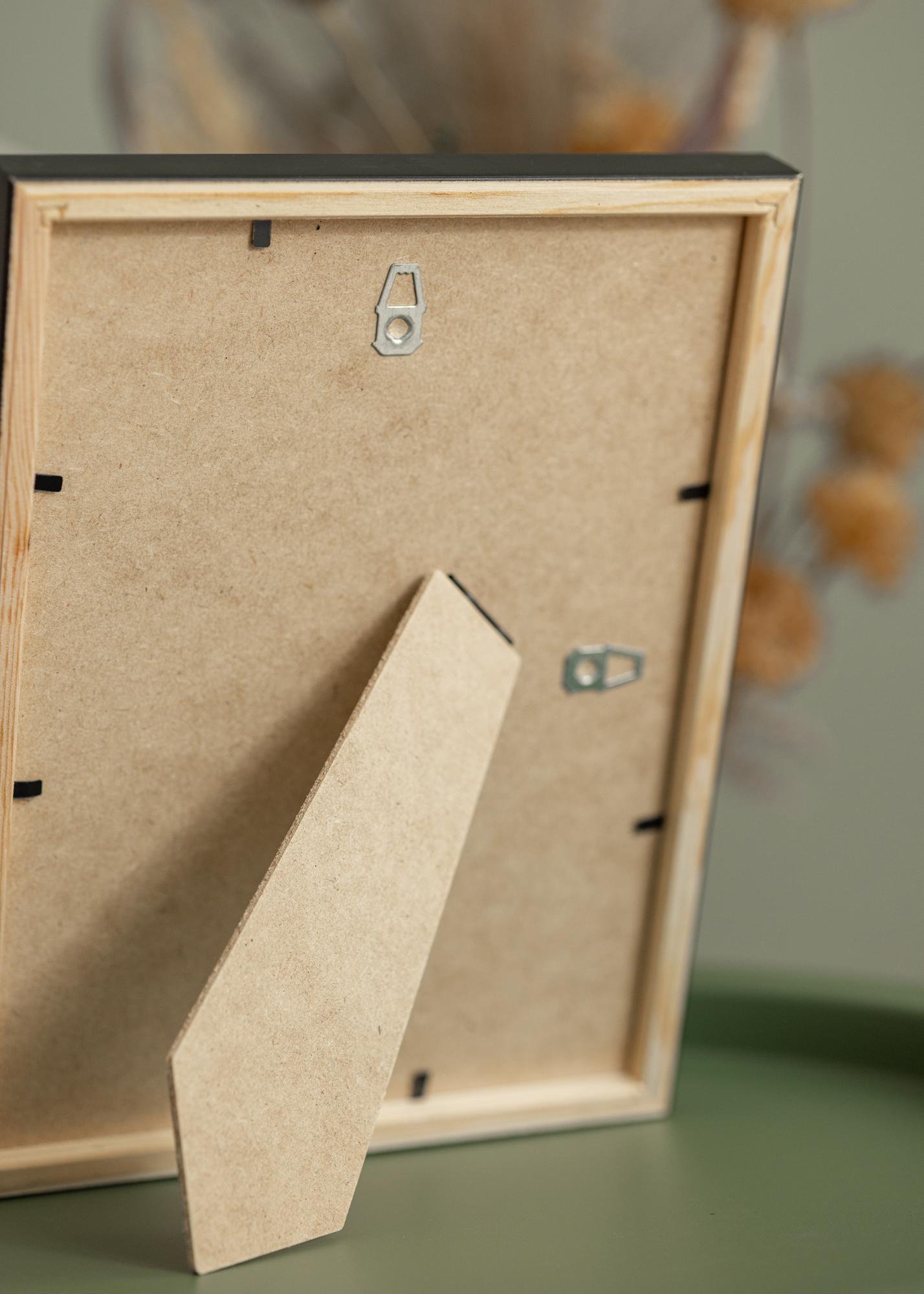 Okvir se može montirati na zid u uspravnom ili ležećem položaju, a jednako dobro izgleda sam na zidu ili u kombinaciji s drugim okvirima. Na stražnjoj strani nalazi se stražnja ploča od HDF materijala, koja se drži na mjestu malim klinovima. Da biste umetnuli svoje motive, savijte klinove i uklonite stražnju ploču.