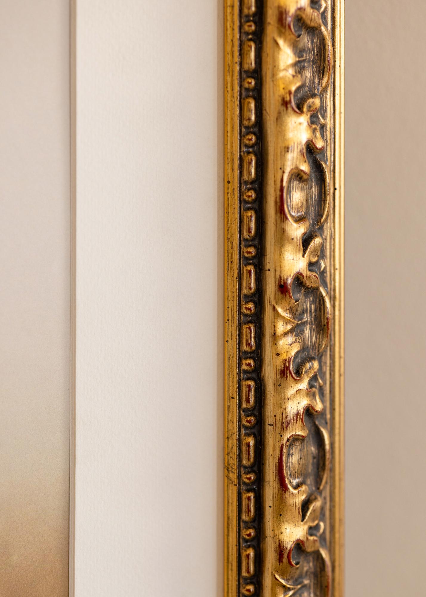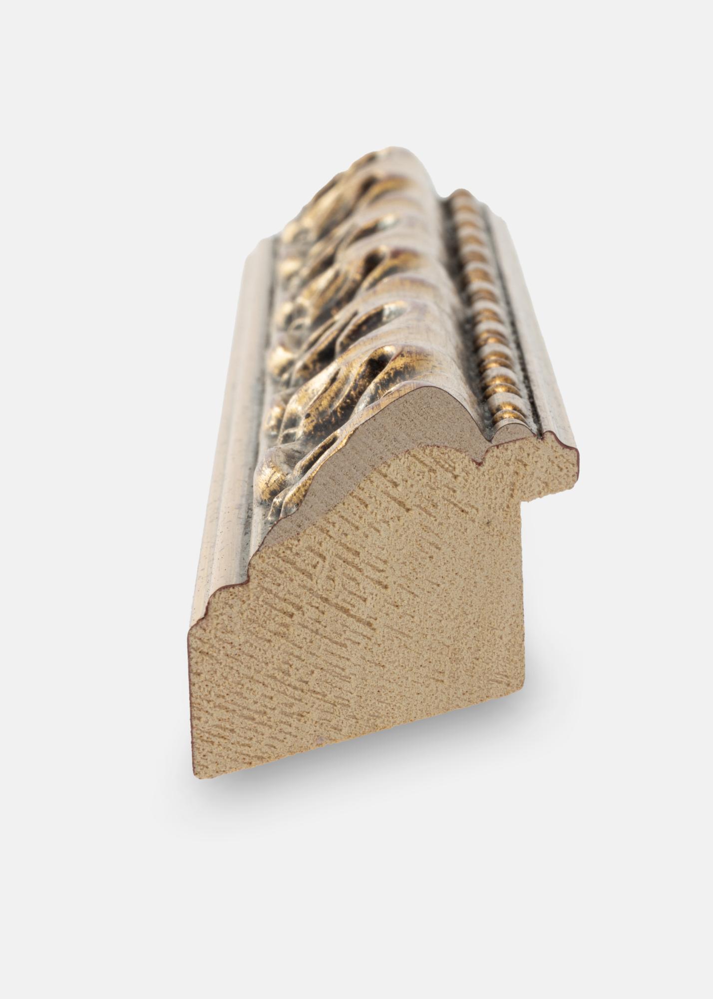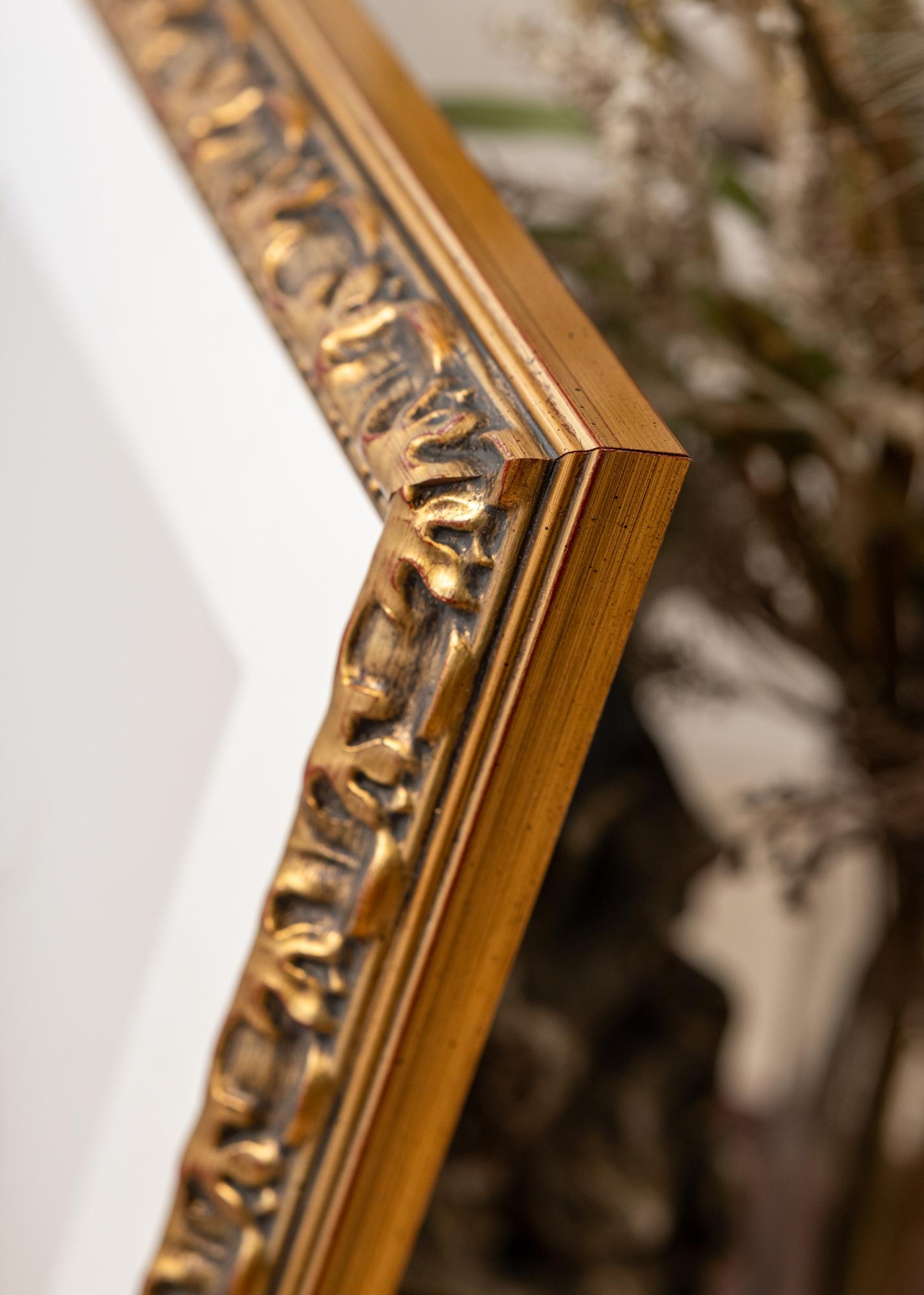 Okvir Freyja Zlato je elegantan i stilski okvir za fotografije koji vašim slikama daje luksuzan okvir. Svojom zlatnom površinom i složenim ukrasima postaje upadljiv element u bilo kojoj prostoriji. Antička završna obrada, s tamnim patiniranim detaljima i suptilnim crvenim nijansama, pojačava rustikalni karakter okvira i daje mu bezvremensku privlačnost.