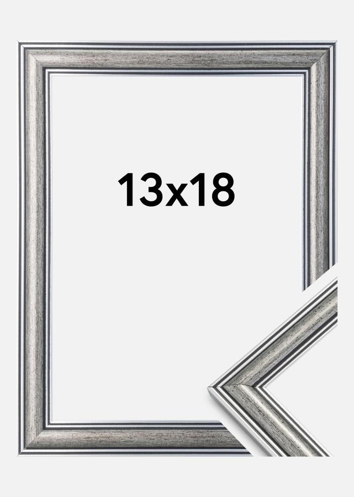 Frigg je srebrni okvir s crnim linijama i crnim prskanim detaljima. Izvrsno odgovara kada tražite široki tradicionalni srebrni okvir koji odgovara mnogim vrstama slika i okruženja.