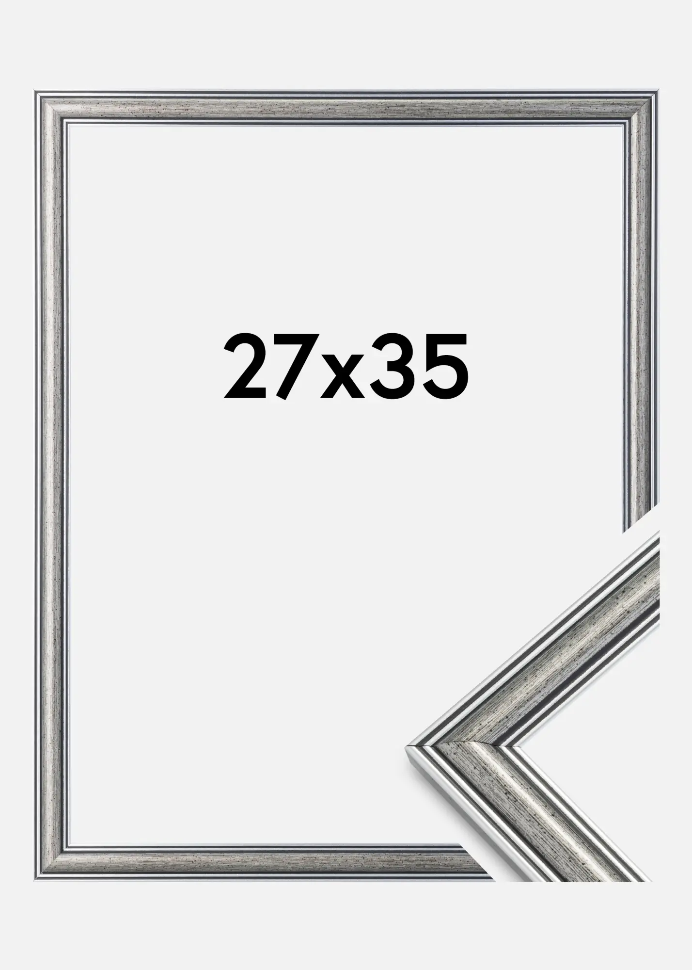 Frigg je srebrni okvir s crnim linijama i crnim mrljastim elementima. Odgovara izvrsno kada tražite široki tradicionalni srebrni okvir koji pristaje mnogim vrstama slika i okruženja.