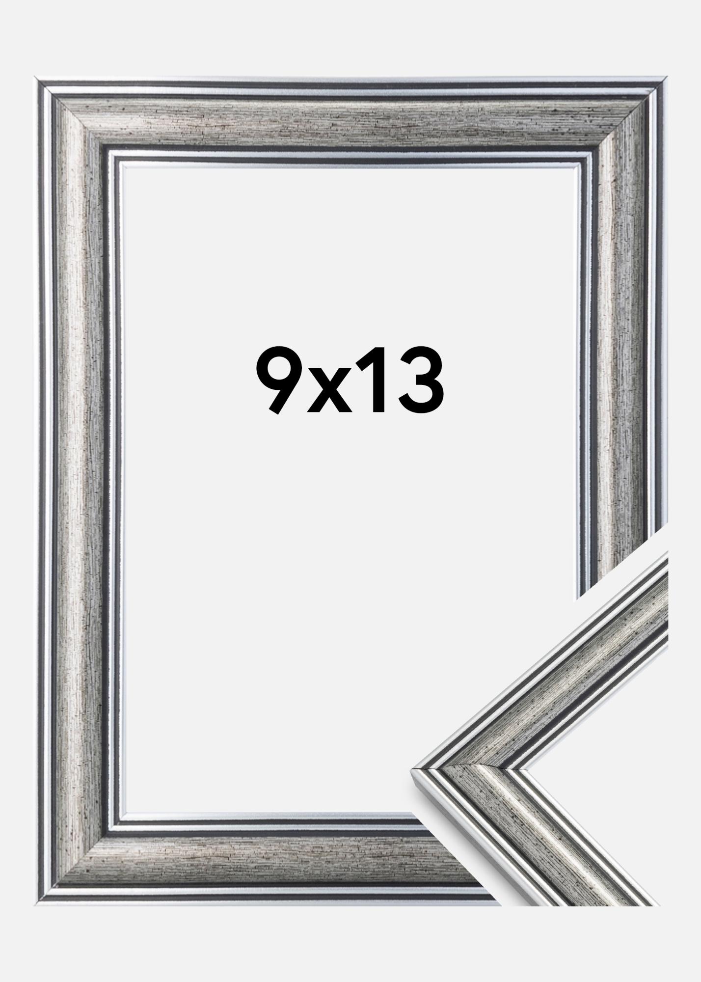Frigg je srebrni okvir s crnim linijama i crnim prošaranim detaljima. Savršeno odgovara kada tražite široki tradicionalni srebrni okvir koji odgovara mnogim vrstama slika i okruženja.