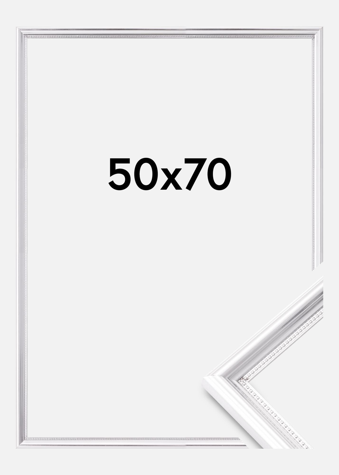 Dajte svojim zidovima daÅ¡ak elegancije s ovim srebrnim okvirom za fotografije veliÄine 50x70 cm. Sa svojim profiliranim okvirom Å¡irine 20 mm i dubine 17 mm, ovaj okvir za slike kombinira klasiÄan dizajn s modernim detaljima. Sjajna povrÅ¡ina prekrasno reflektira svjetlost i donosi luksuzan osjeÄaj u vaÅ¡ dom.