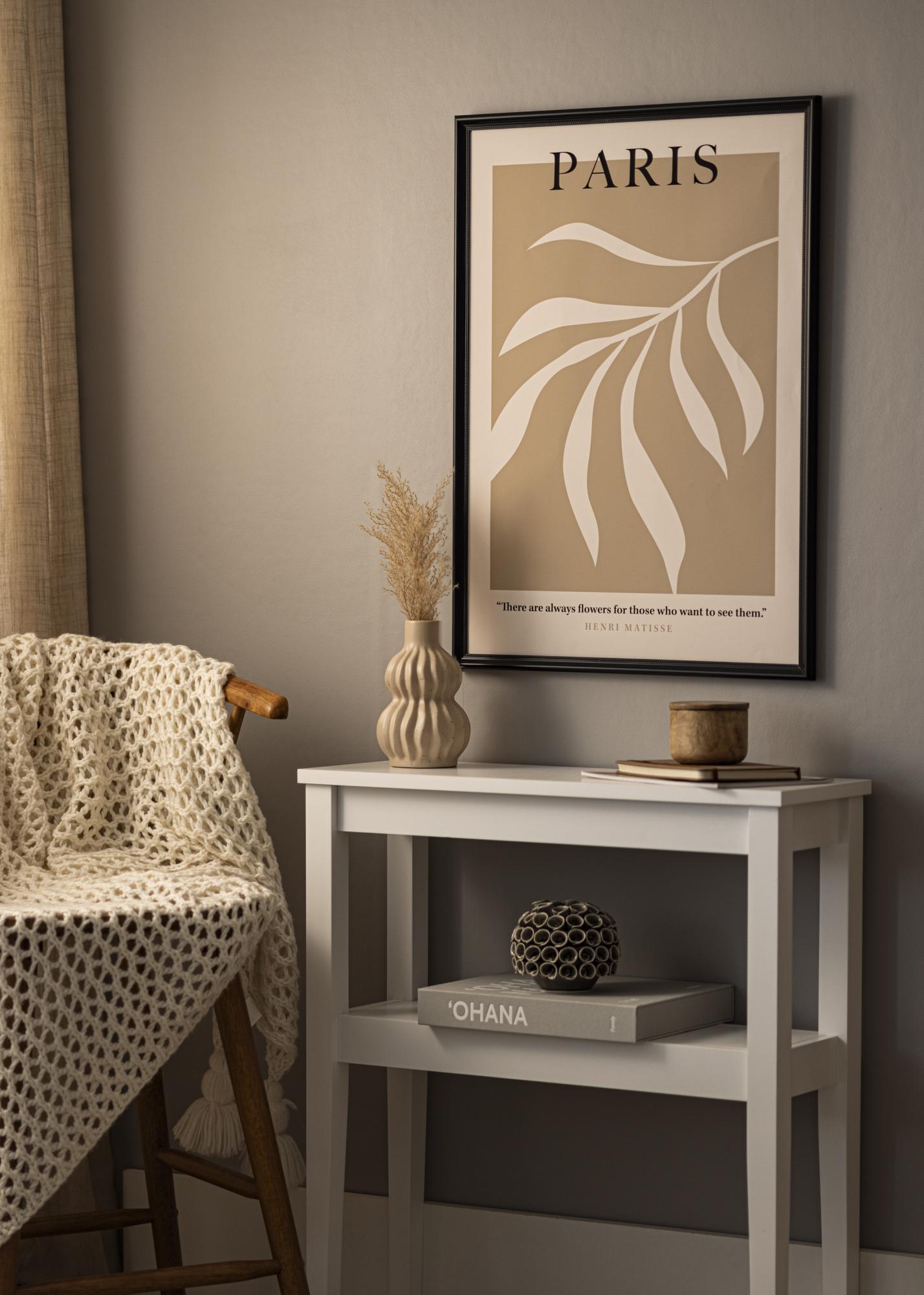 Okvir ima mat završnu obradu i bijeli passepartout. Opremljen je metalnim vješalicama za horizontalno i vertikalno vješanje.