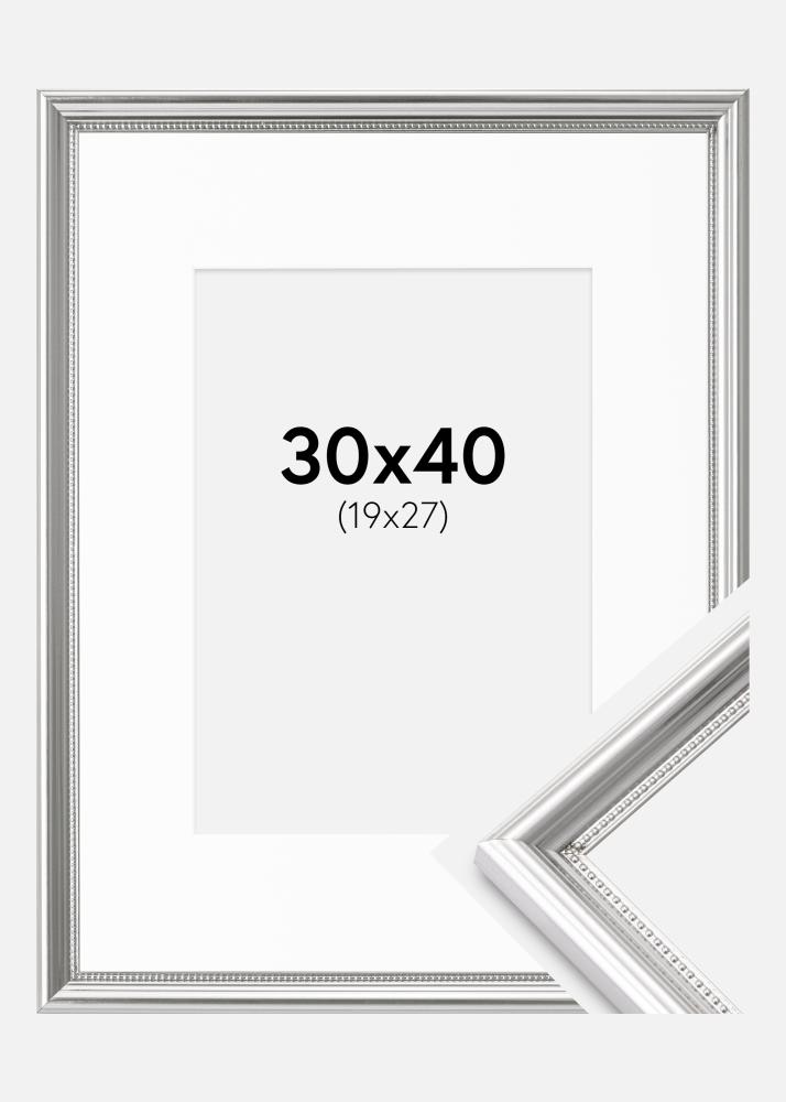 Okvir Gala Srebro 30x40 cm - Paspartu Bijelo 20x28 cm