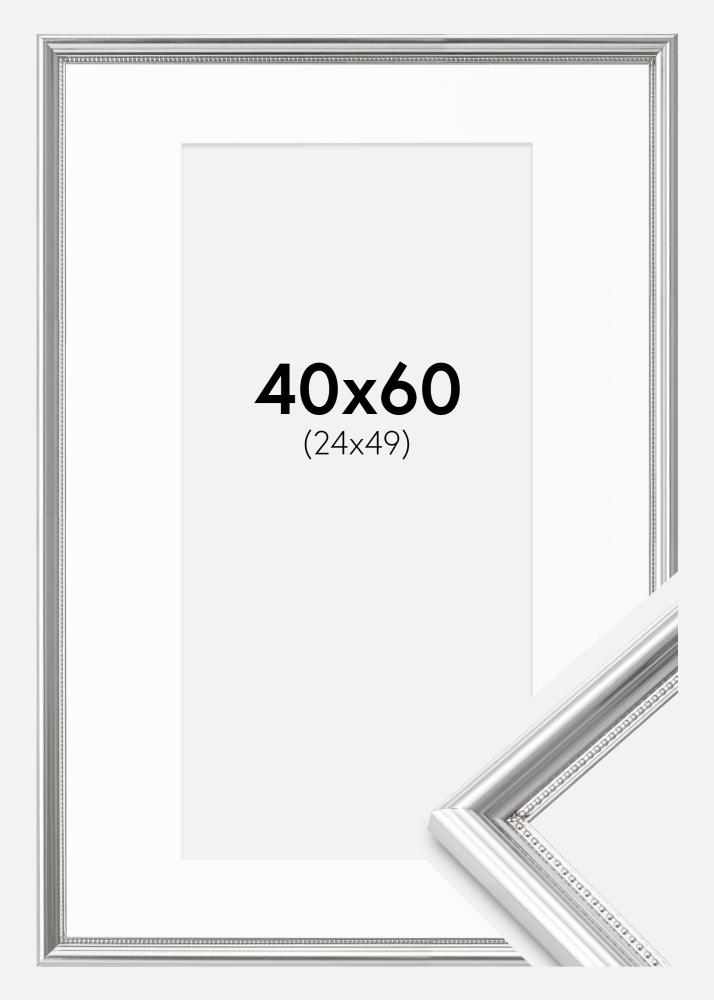 Okvir Gala Srebro 40x60 cm - Paspartu Bijelo 25x50 cm