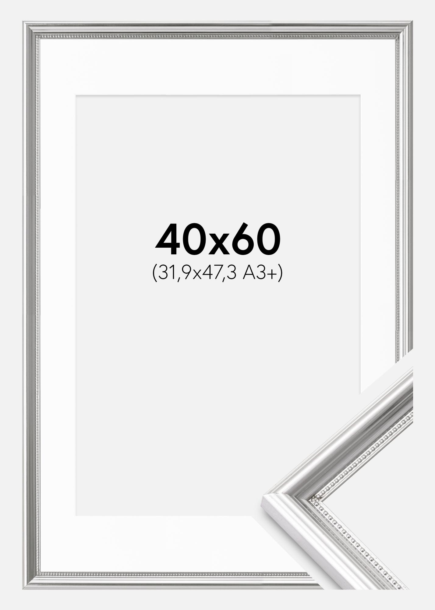 Okvir Gala Srebro 40x60 cm - Paspartu Bijelo 32,9x48,3 cm (A3+)