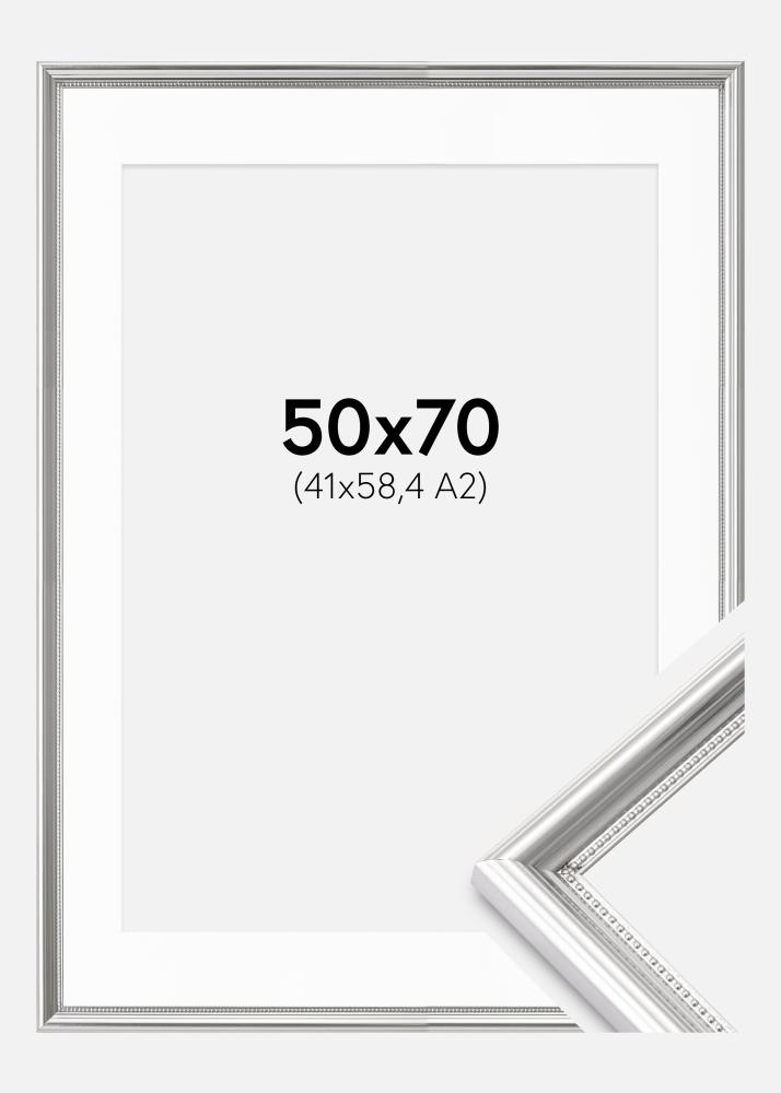 Okvir Gala Srebro 50x70 cm - Paspartu Bijelo 42x59,4 cm (A2)