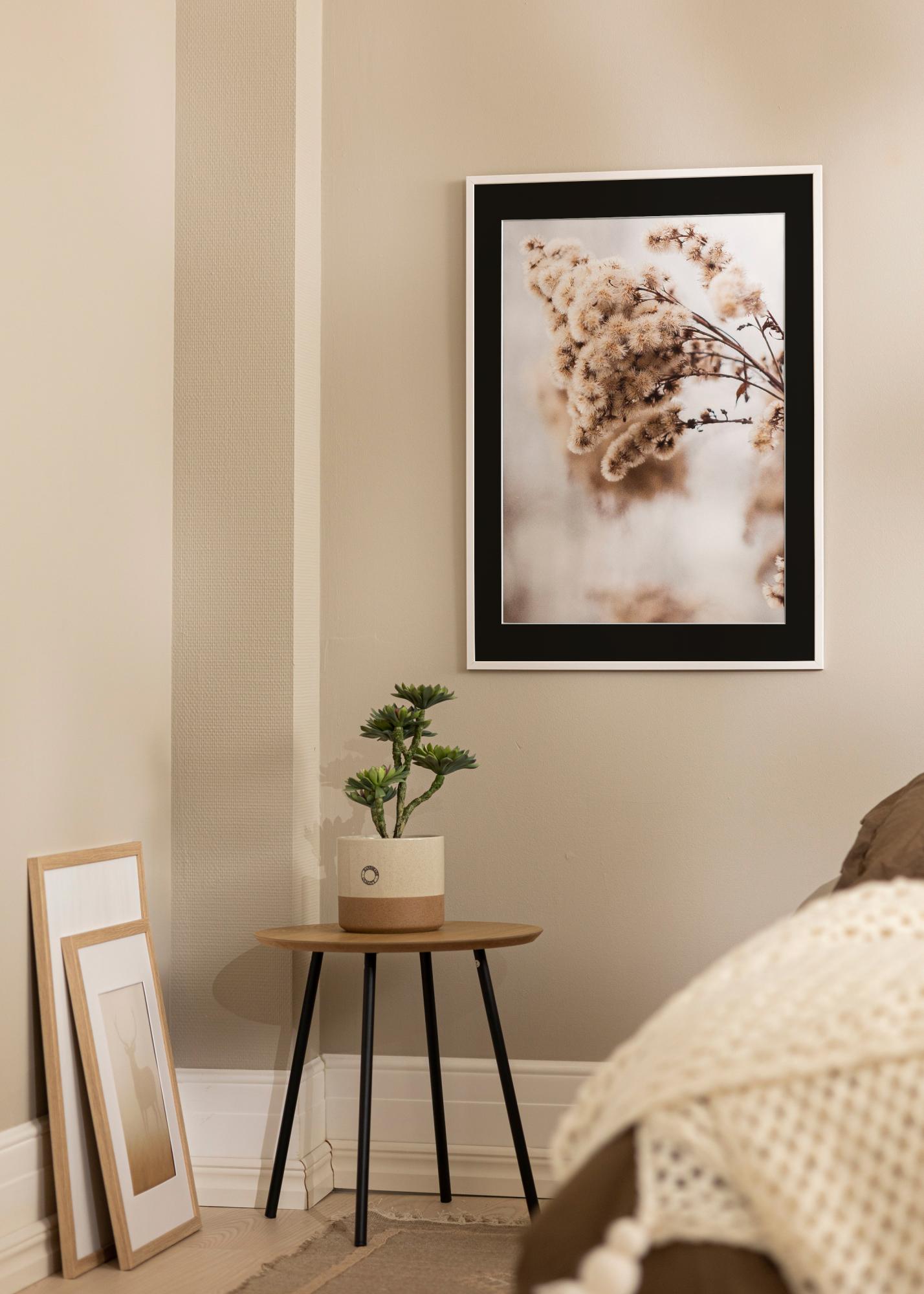 Tanak profil okvira širine 13 mm i dubine 13 mm doprinosi diskretnoj i elegantnoj uokvirenju koje ne odvraća pažnju od slike. Mat završna obrada okvira nadopunjuje crnu boju passepartouta i stvara skladnu cjelinu. Passepartout ne funkcionira samo estetski, već također štiti sliku od direktnog kontakta s staklom, čime doprinosi dužem očuvanju kvalitete slike.