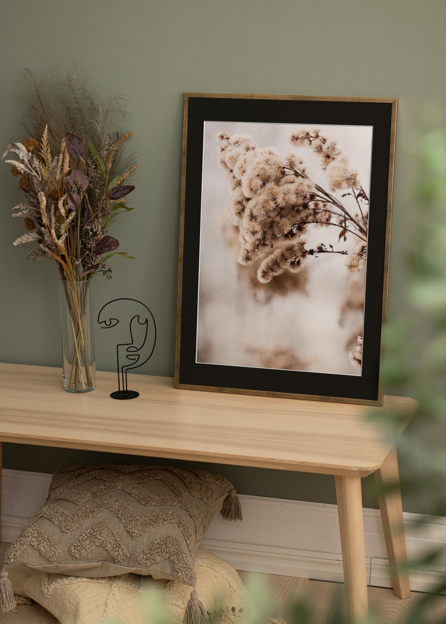 Doživite umjetnost isticanja s našim elegantnim zlatnim okvirom, savršeno dimenzioniranim za slike veličine 18x27 cm. Priloženi crni passepartout pruža dubinu i kontrast koji profesionalno ističu vašu fotografiju ili umjetničko djelo. Sjajna površina okvira i uski profil, koji mjeri 13 mm u širini i dubini, elegantno nadopunjuju uokvireni motiv.
