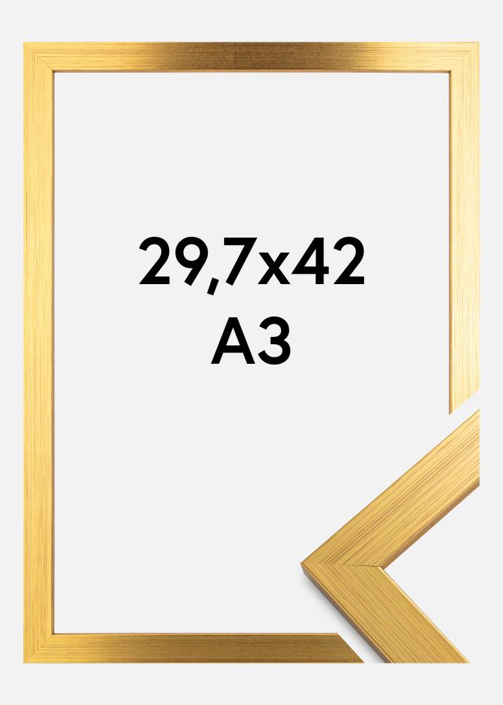 Otkrijte elegantan i stilski zlatni okvir veliÄine 29,7x42 cm (A3), savrÅ¡en za uokvirivanje vaÅ¡ih umjetnina i fotografija u formatu A3. Sa klasiÄnom zlatnom nijansom, ovaj okvir za slike pruža luksuzni osjeÄaj svakoj slici koju obuhvaÄa. Proizveden u Å vedskoj, ovaj okvir za slike kombinira tradicionalnu izradu s modernim dizajnom.