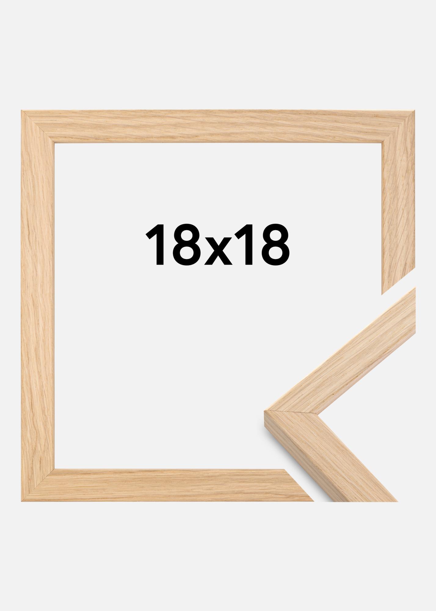 Grimsåker okvir hrast 22A 18x18 cm ima unutrašnje dimenzije 18x18 cm, dok letva mjeri 1,7x2,25 cm.