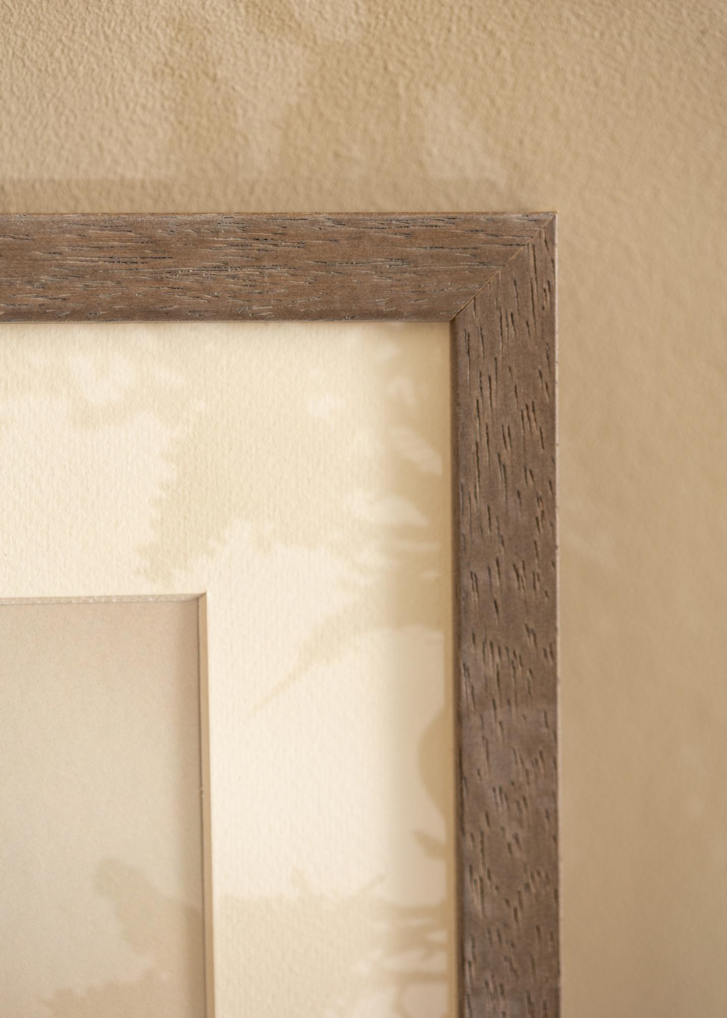 Stvorite elegantan zidni kolaž s ovim stiliziranim okvirom za fotografije dimenzija 60x80 cm. Siva boja, u kombinaciji s oslikanom površinom koja naglašava strukturu drveta, pruža sofisticiran i moderan dojam u vašem domu. Širina okvira od 19,6 mm i dubina od 25 mm dodaju posebnu dimenziju vašoj uokvirenoj slici ili umjetničkom djelu.