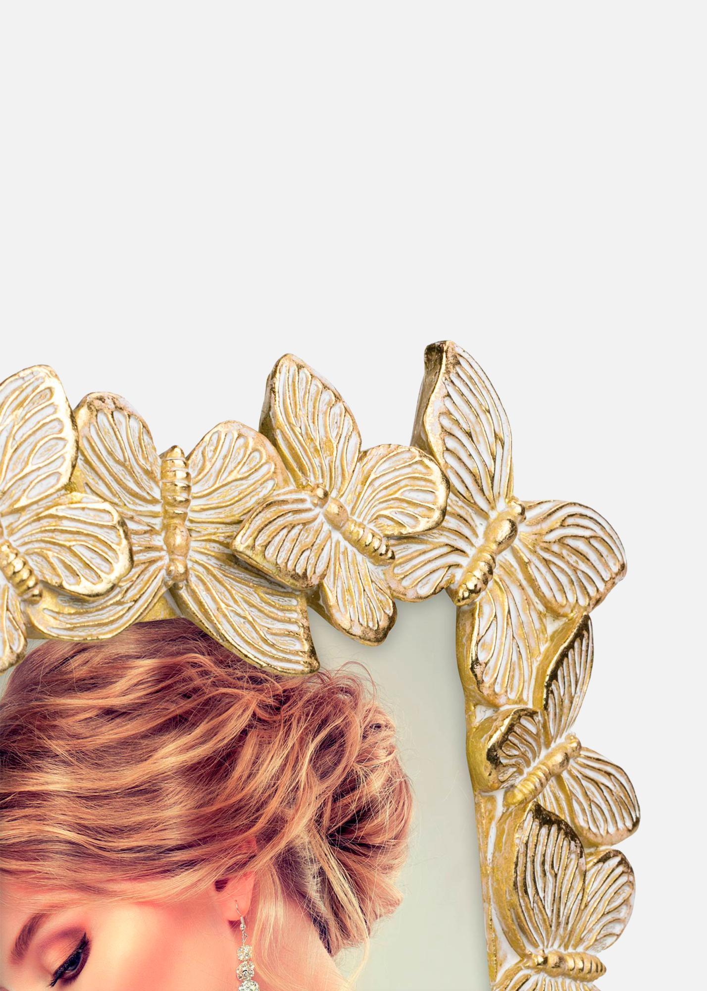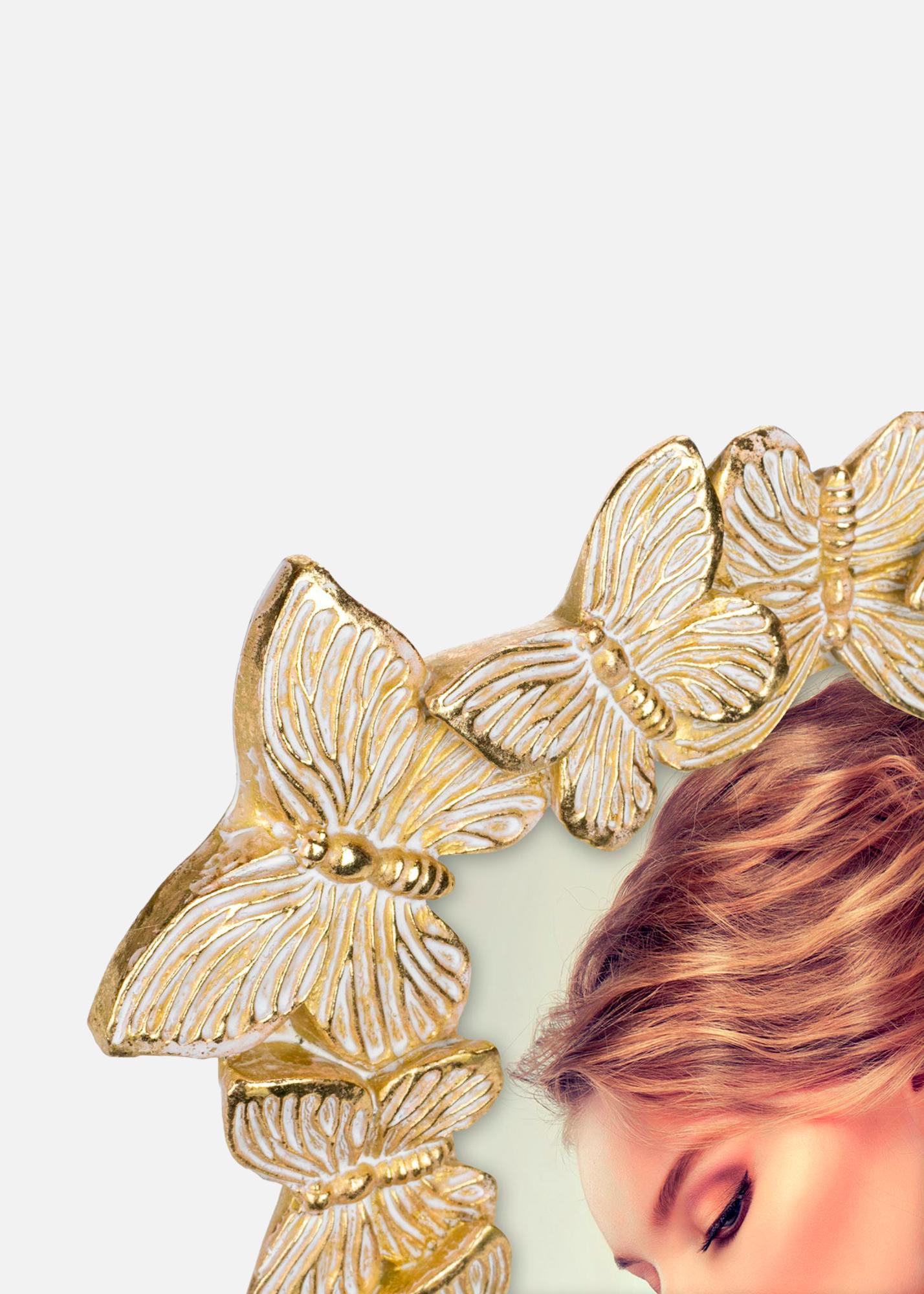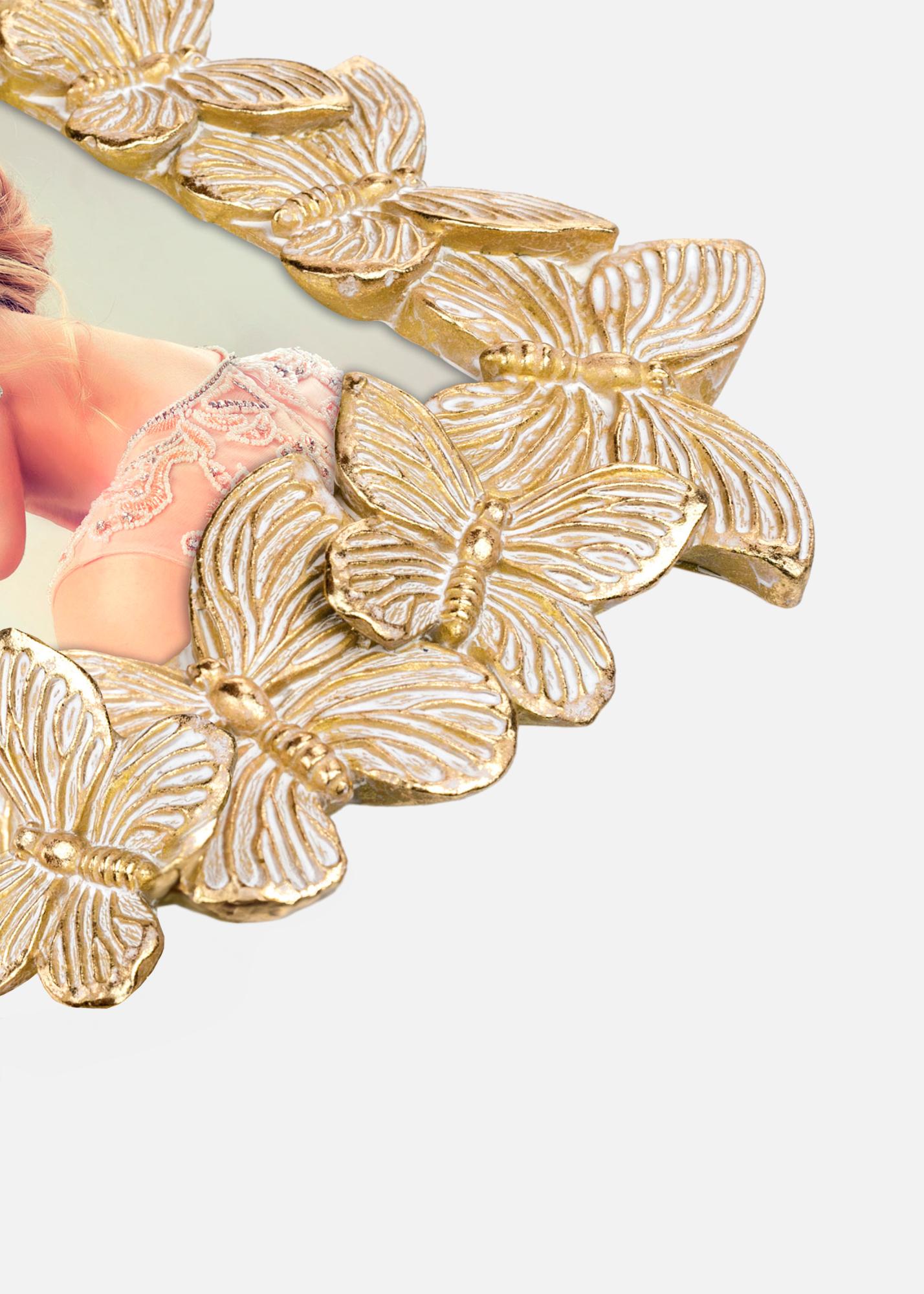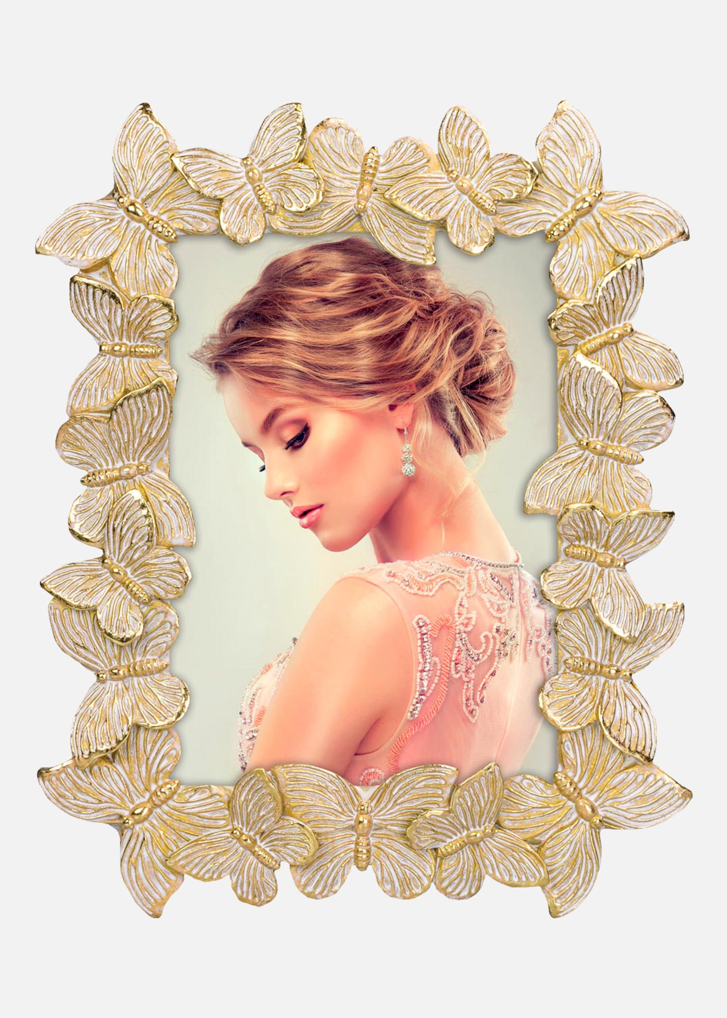 Otkrijte oÄaravajuÄu ljepotu naÅ¡eg okvira za portrete dimenzija 13x18 cm, pravog privlaÄitelja pogleda za vaÅ¡ dom. Ovaj jedinstveni okvir za fotografije ukraÅ¡en je detaljnom profiliranom letvicom s leptirima u zlatu i bijeloj boji, Å¡to daje razigran i elegantan dojam vaÅ¡im omiljenim slikama.