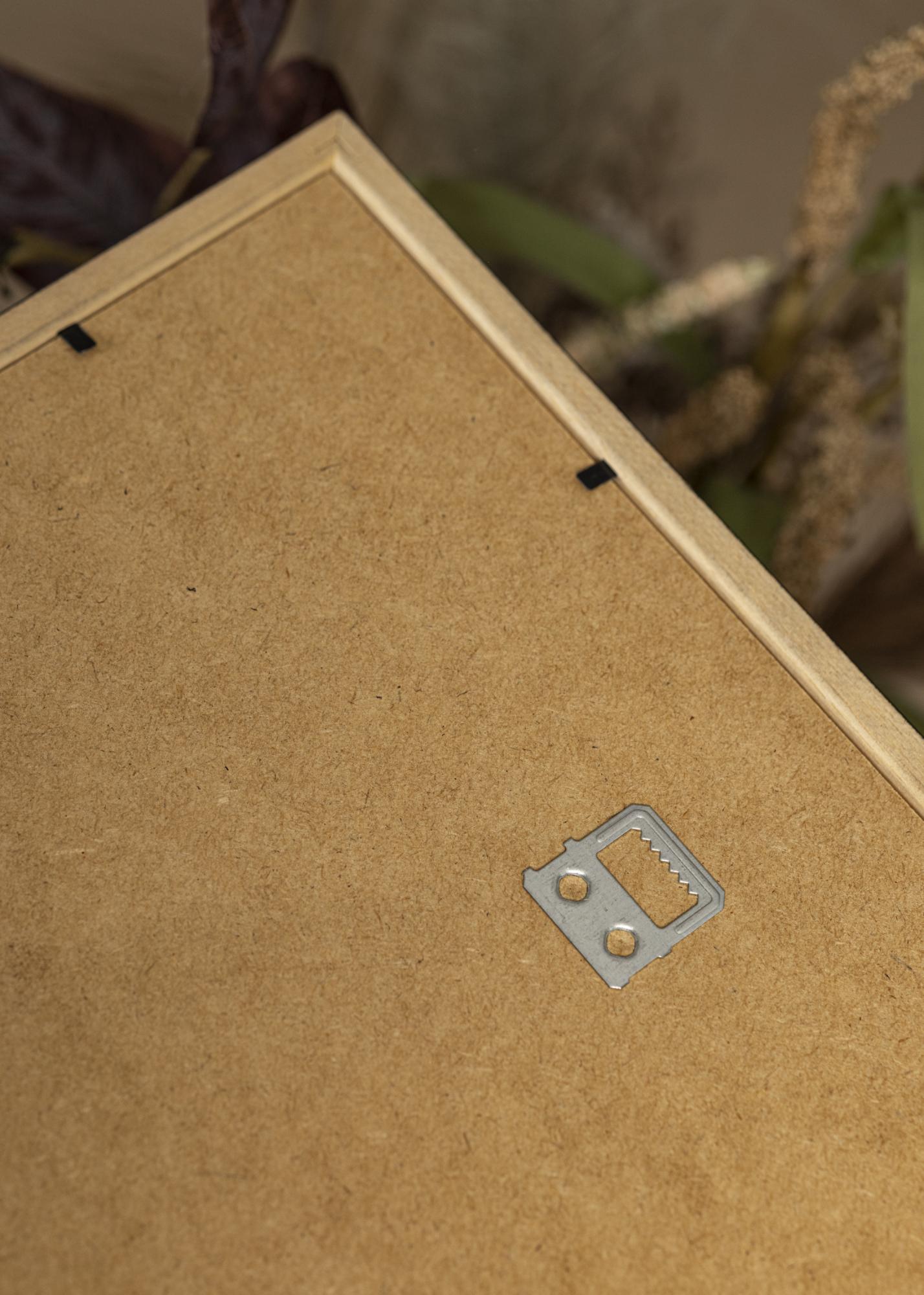 Letvica okvira široka je 15 mm i doprinosi diskretnom, ali prisutnom osjećaju na zidu. S dubinom od 14 mm, okvir stvara lijep trodimenzionalni efekt. Mat površina okvira nadopunjuje njegov moderan dizajn i omogućuje da vaše slike budu u središtu pozornosti bez ometajućih refleksija.