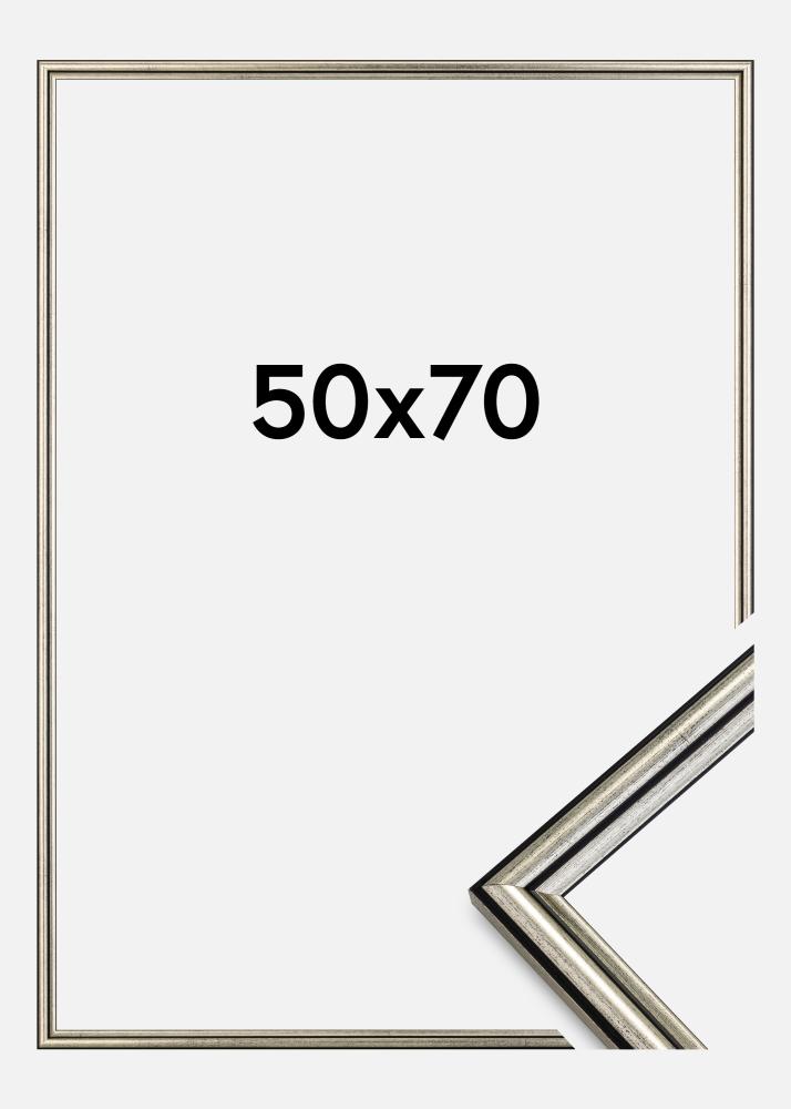 Otkrijte eleganciju i sofisticirani dizajn s našim srebrnim okvirom dimenzija 50x70 cm, savršenim za isticanje vaših omiljenih umjetnina ili fotografija. Ovaj foto okvir stiliziran je detalj u svakoj sobi, sa suptilnim crnim prskanim detaljima i crnim linijama koje daju jedinstveni karakter.
