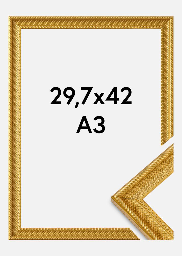 Ovaj elegantan zlatni okvir za slike savršena je kombinacija klasičnog dizajna i moderne funkcionalnosti. Sa svojim detaljnim uzorcima duž rubova, daje luksuzni osjećaj koji poboljšava svako umjetničko djelo ili fotografiju. Okvir je izrađen od kompozitnog materijala, što mu daje čvrstu i izdržljivu strukturu. Dizajniran je da odgovara motivima veličine 29,7x42 cm (A3), što ga čini idealnim za stilizirano prikazivanje vaših omiljenih uspomena.