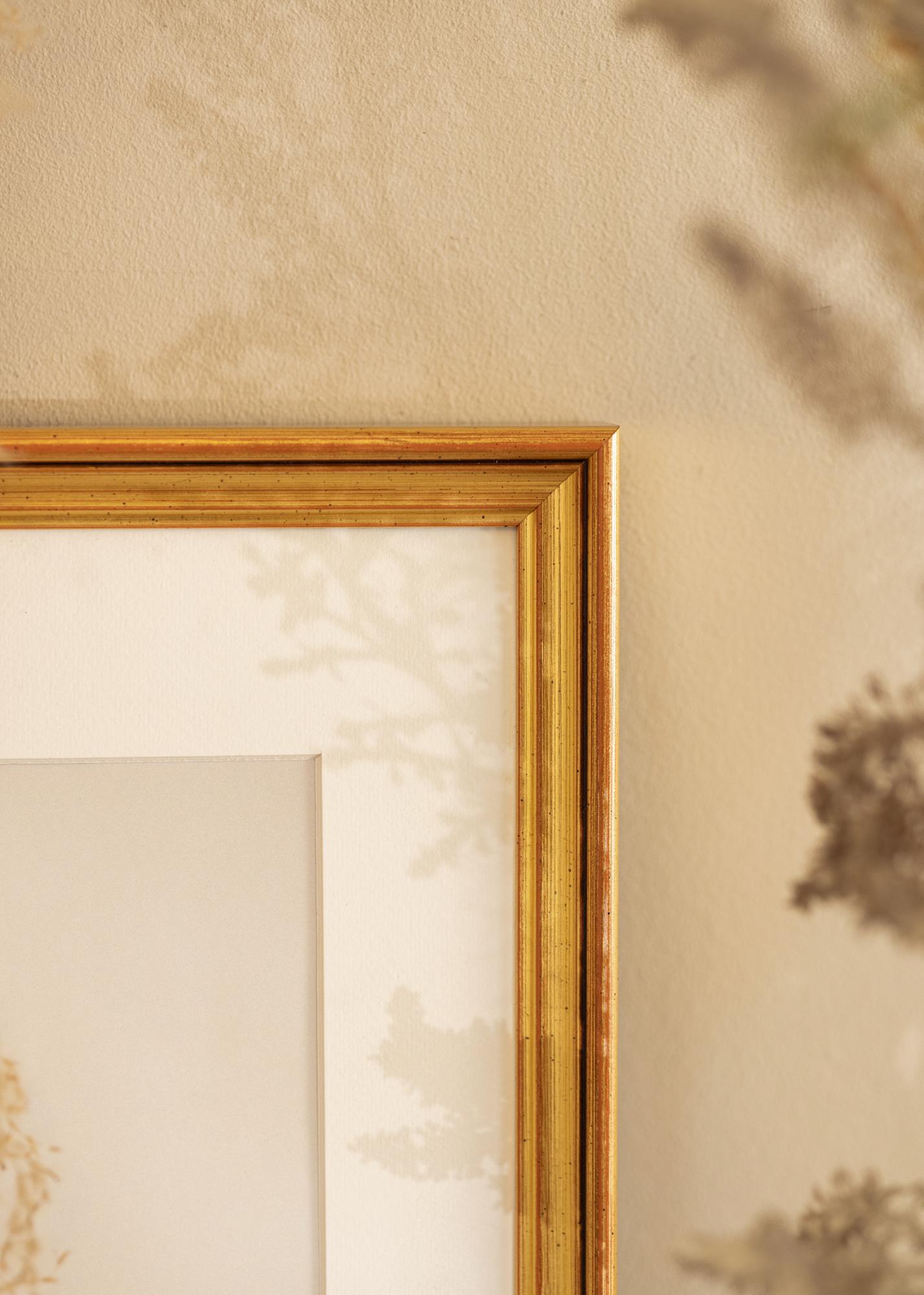 Okvir Loki Zlatni je elegantan i klasičan okvir za slike koji vašim umjetničkim djelima i fotografijama pruža sofisticiranu uokvirenost. Svojim tankim profilom i suptilnim patiniranim detaljima, ovaj zlatni okvir nudi bezvremenski karakter koji savršeno pristaje kako u modernim tako i u tradicionalnim sredinama. Zlatna površina ima lagani antikni završetak s malim tamnim detaljima, što pojačava njegov elegantni izgled i stvara osjećaj dubine i povijesti.