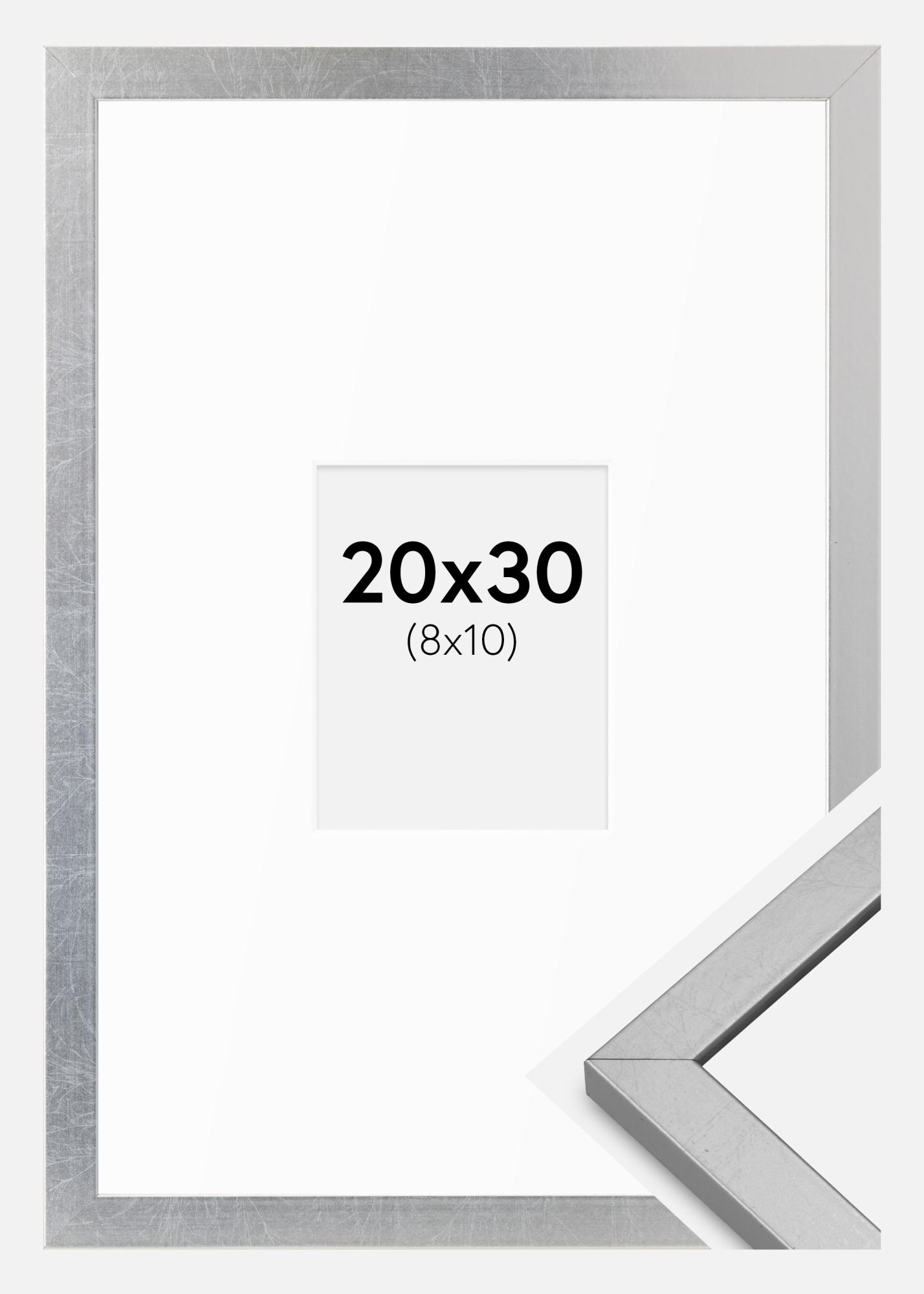 Okvir Minerva srebro 20x30 cm - Paspartout Bijela 9x11 cm