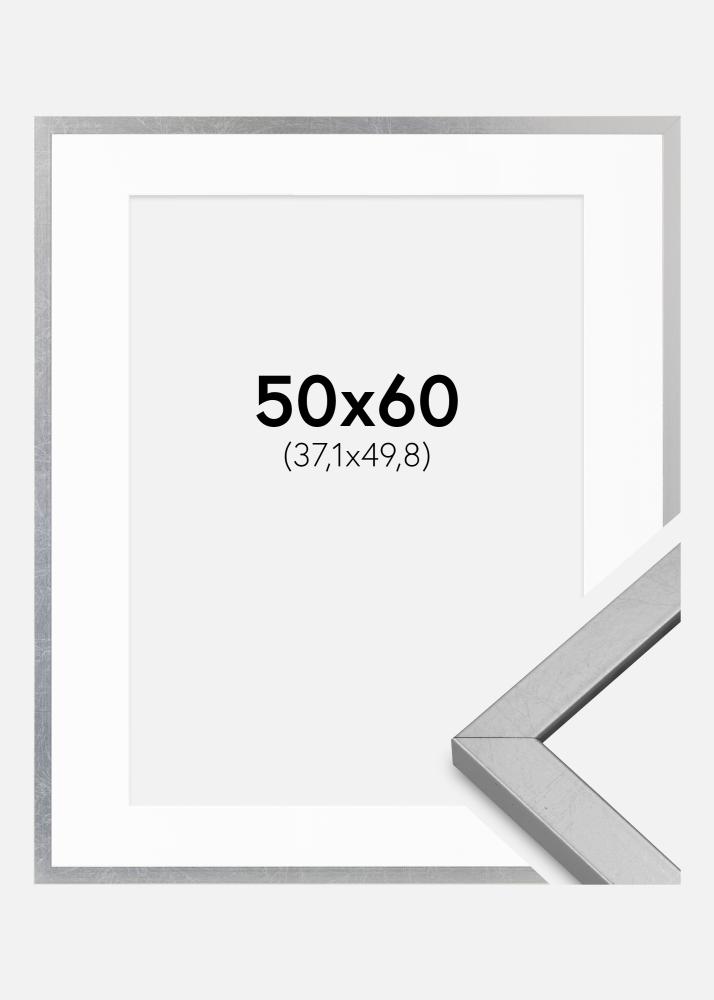 Okvir Minerva Srebro 50x60 cm - Paspartui Bijela 15x20 inča