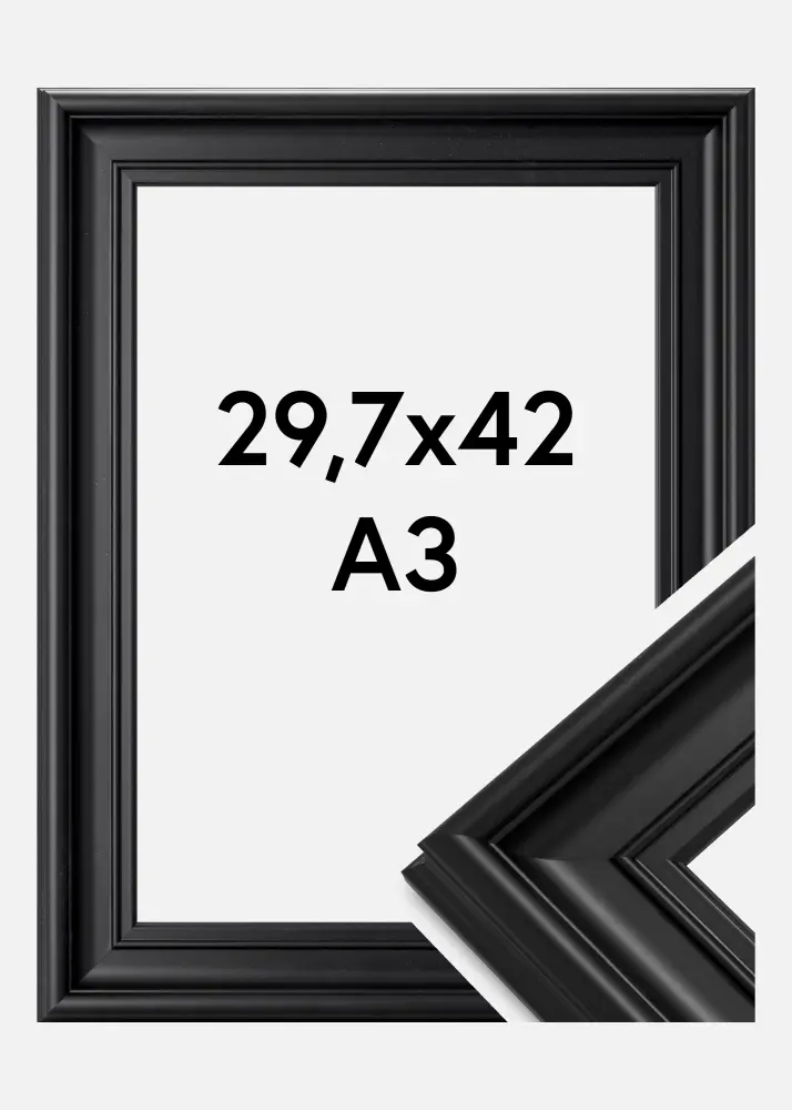 Mora Premium Crna jedna je od naših najfinijih okvira za slike. Izrađena je od drveta iz naših divnih švedskih šuma i montirana u našoj vlastitoj radionici za okvire. To nam omogućava da jamčimo kvalitetu iznad prosjeka. Okvir ima elegantan širok crni profil širine čak 57 mm. Savršen za vaše najljepše slike!