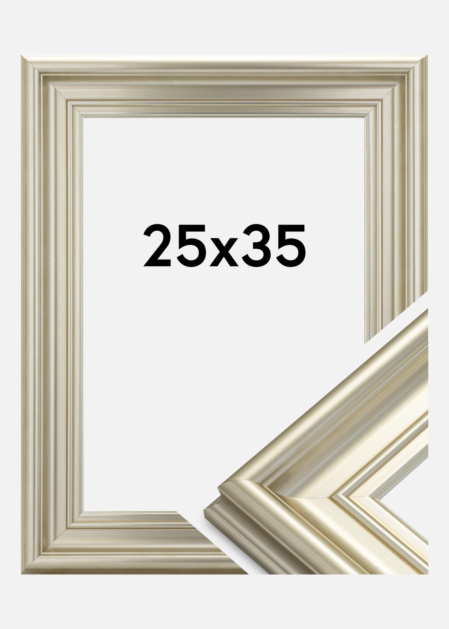 Mora Premium Silver jedna je od naših najfinijih srebrnih okvira. Izrađena je od drva iz naših lijepih švedskih šuma i montirana u našoj vlastitoj radionici okvira. To nam omogućuje da jamčimo kvalitetu izvan uobičajenog. Okvir ima nježno srebrnastu profilnu liniju u starom oslikanom stilu s širinom od čak 57 mm. Savršeno za vaše najljepše slike!