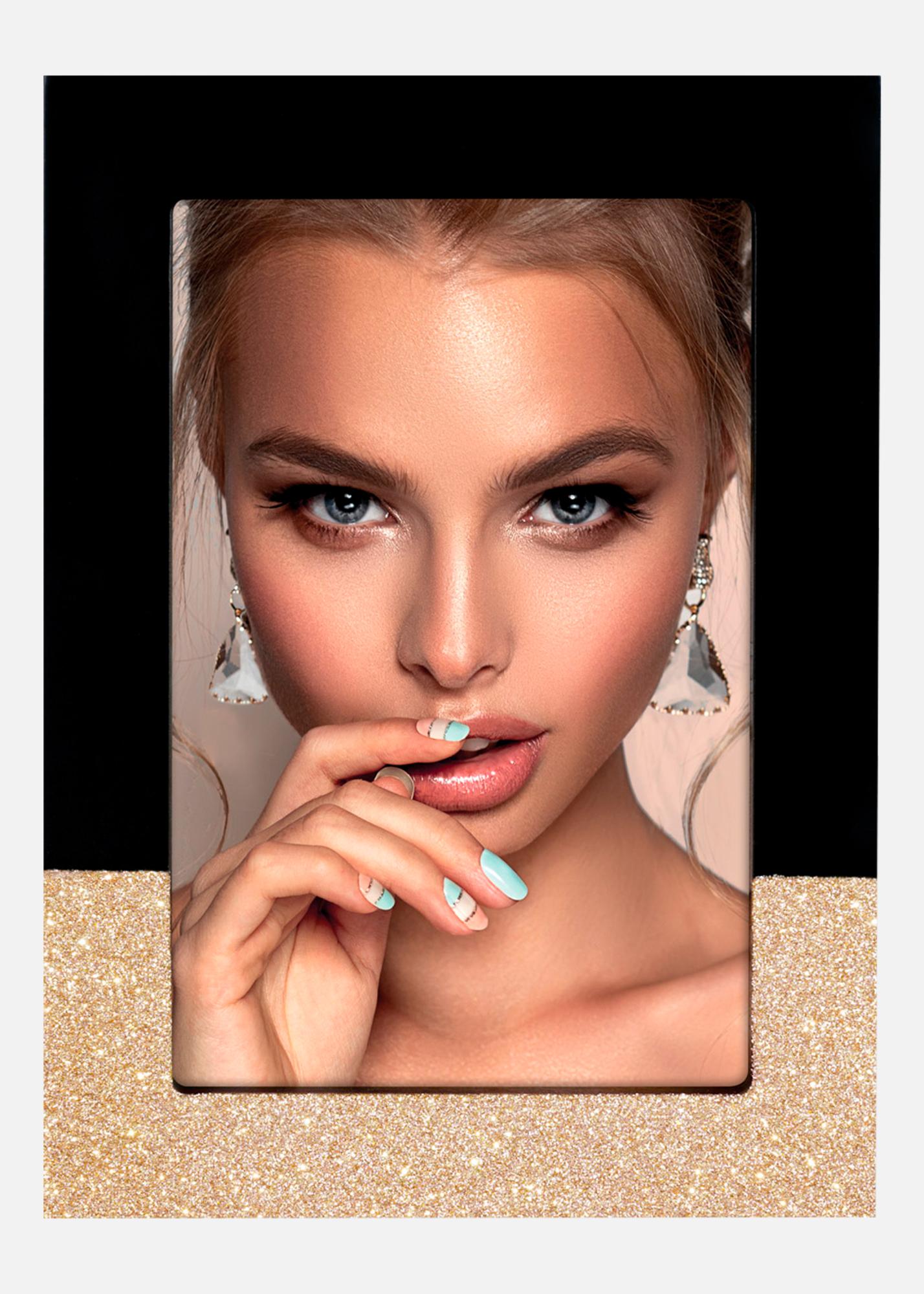 Okvir Morgex Crna 10x15 cm savršen je za uokvirivanje vaših omiljenih slika. Sa svojim modernim i elegantnim dizajnom kombinira elegantnu crnu i zlatnu boju kako bi stvorio sofisticirani izgled. Crna površina pruža lijep kontrast, dok svjetlucava zlatna boja na dnu dodaje luksuzan i upečatljiv učinak.