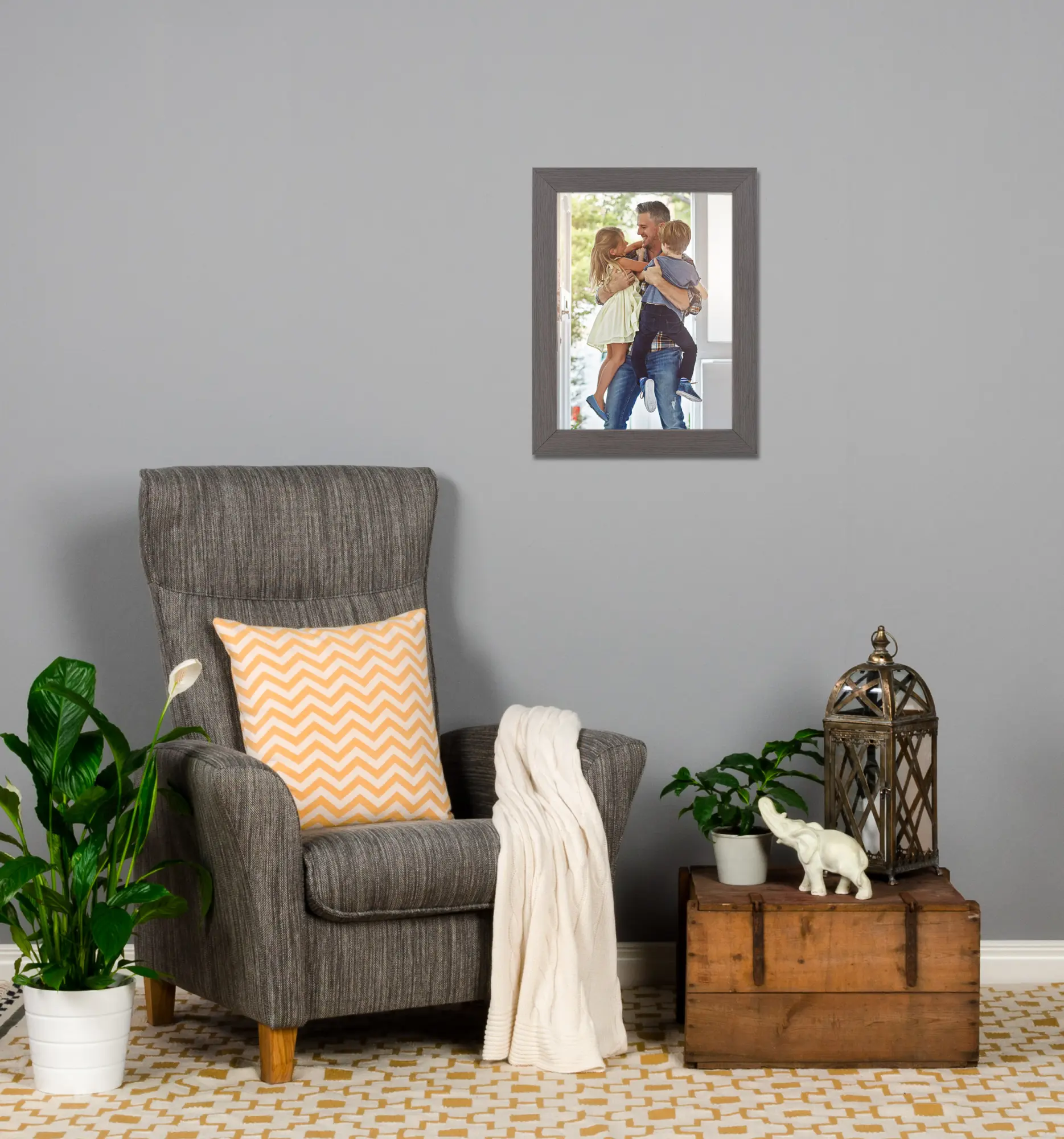 S Okvirom Moviken Tamnosiva ne dobivate samo praktično rješenje za prikaz vaših slika, već i dekorativni detalj koji upotpunjuje vaš dom. Tamnosiva nijansa daje moderan dodir dok suptilno ističe boje i detalje motiva. Odaberite ovaj okvir za slike kako biste vašim fotografijama dali okvir koji zaslužuju.