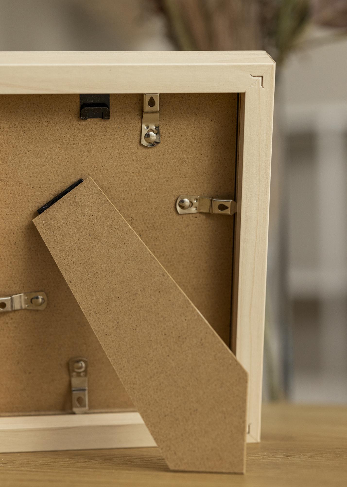 Letvica okvira za slike je duboka 30 mm, što pruža snažan efekt uokvirivanja. Stražnji dio drže metalni klipovi koji se mogu okretati, pomoću kojih možete skinuti stražnju ploču za umetanje slike i passepartouta. Na poleđini okvira nalaze se zidni držači za montažu u uspravnom i ležećem položaju.