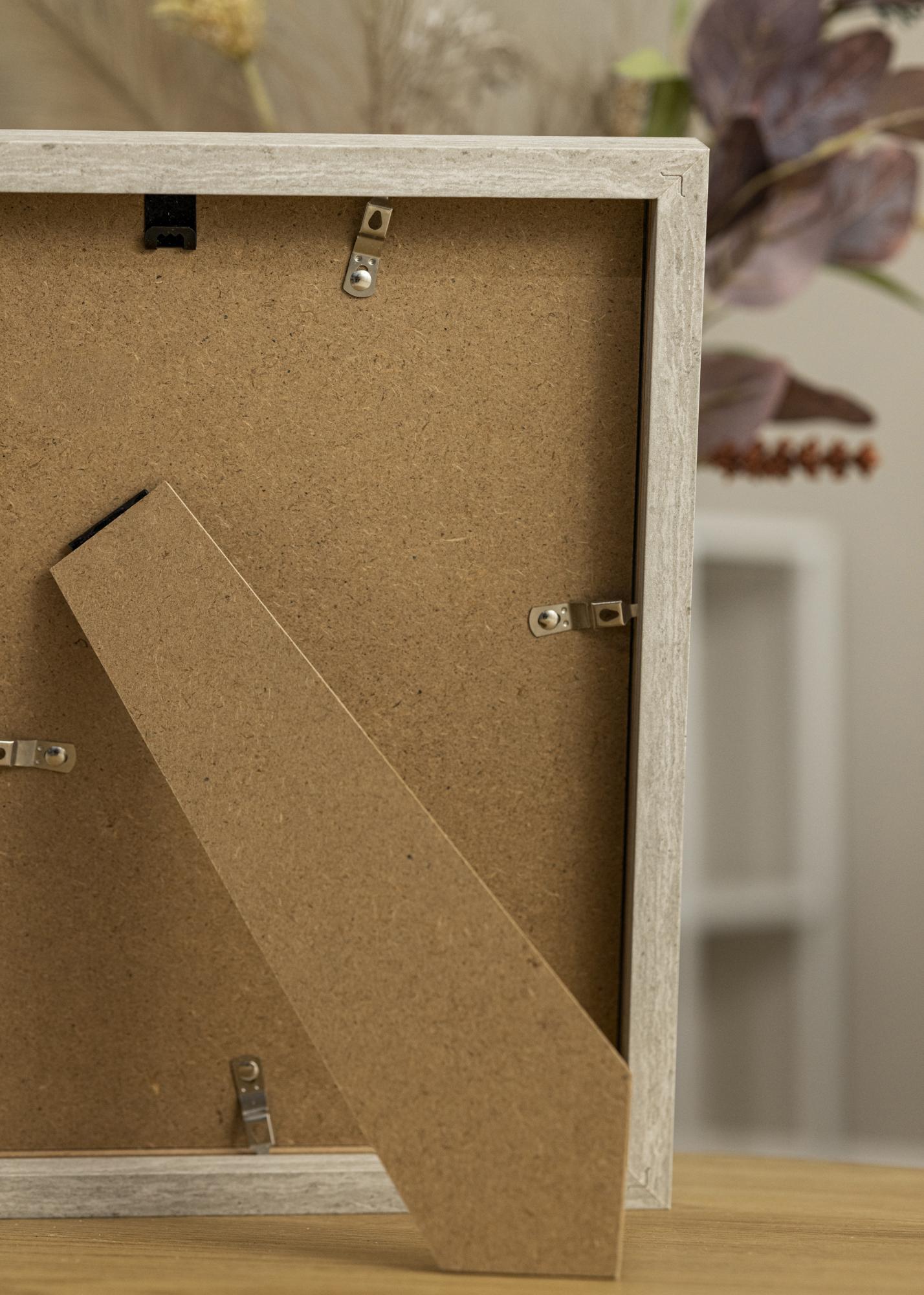 Ovaj okvir za slike izrađen je od MDF-a, i ima mat sivi folirani sloj s prekrasnom teksturom drva. Staklo okvira je pravo staklo. Slike i passepartouti postavljaju se kroz stražnju stranu okvira. Samo zakrenite metalne kopče koje drže stražnji dio i zatim postavite svoje motive.