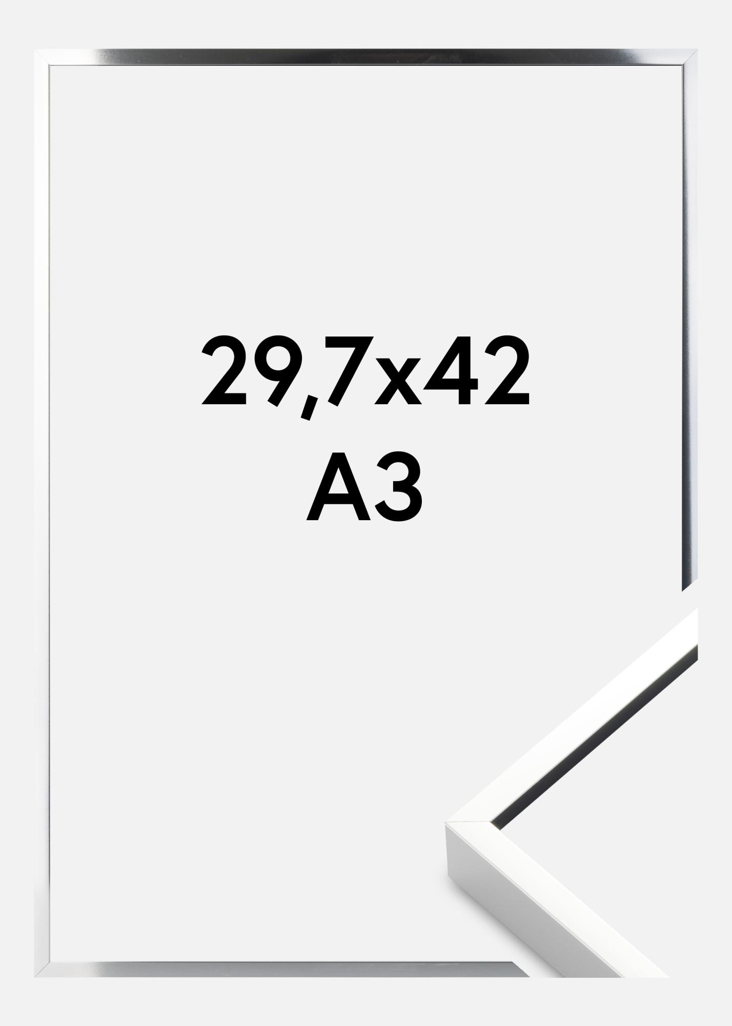 Elegantna sjajna srebrna okvira za slike visoke kvalitete, proizvedena u Njemačkoj s tankim okvirom od aluminija. Minimalistički dizajn okvira čini ga savršenim za dom s pročišćenim stilom uređenja, a diskretna svijetlosiva srebrna boja jednako je pogodna za uokvirivanje fotografija kao i postera. Veliki izbor veličina čini okvir savršenim za korištenje u kolažu slika gdje se kolekcija slika održava zajedno uz pomoć izbora okvira.