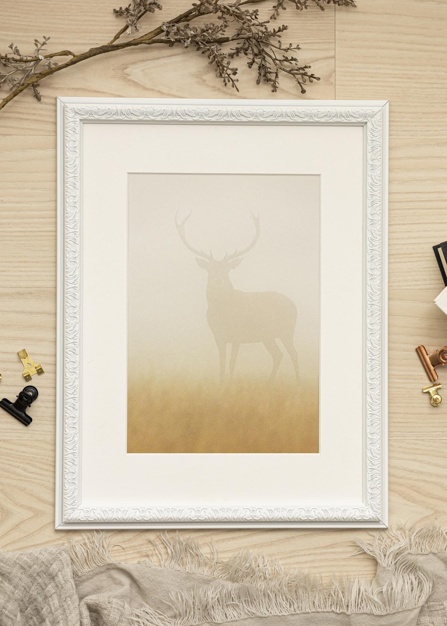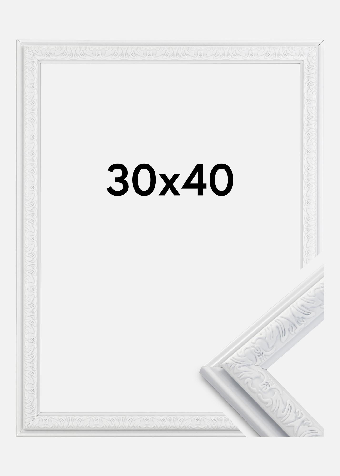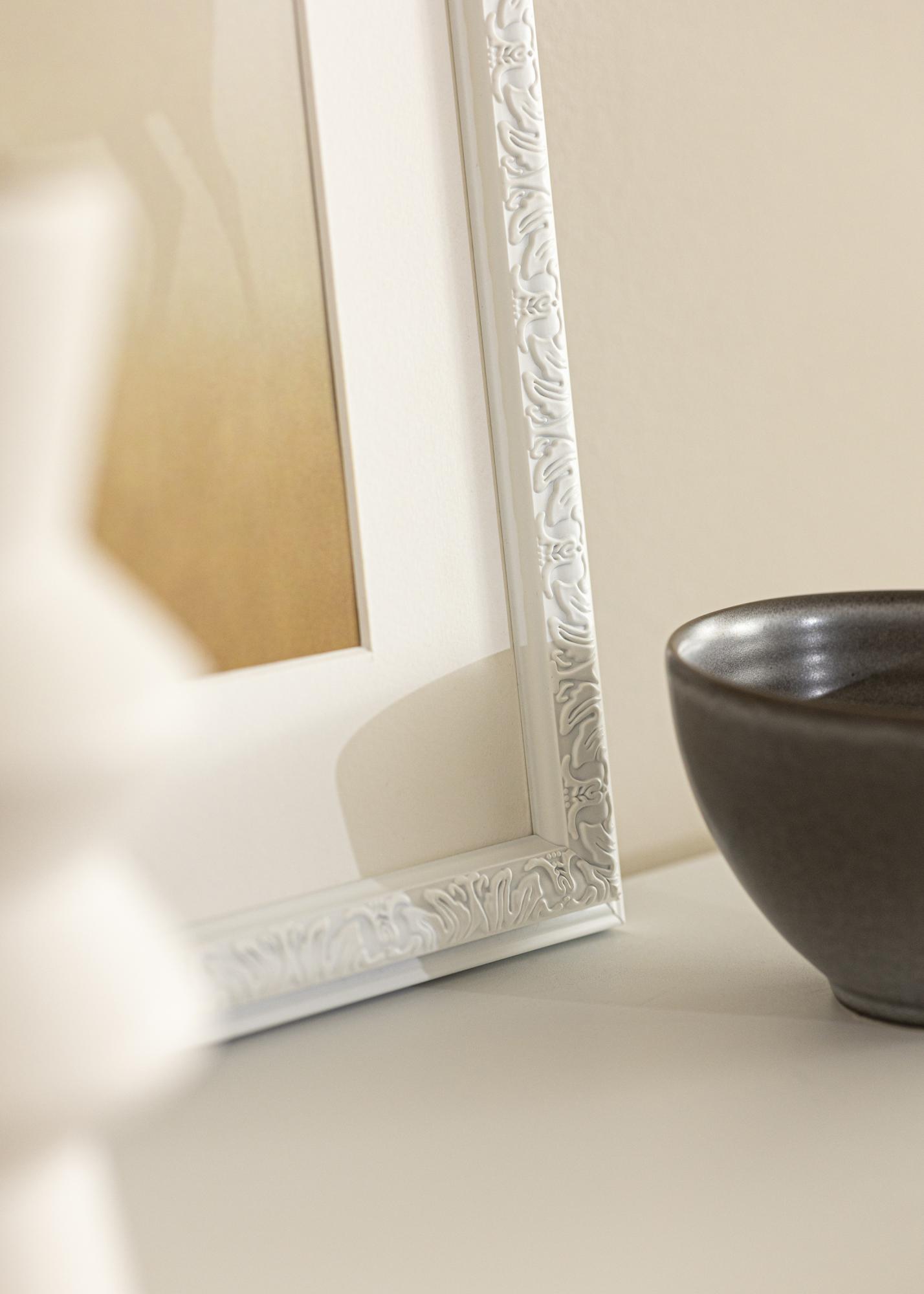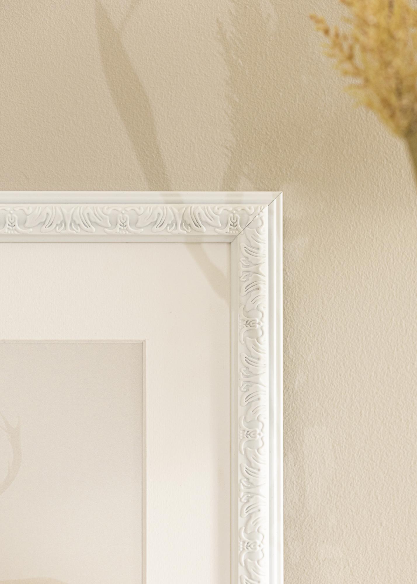 Nostalgia je čvrsti bijeli retro okvir s prekrasnim ukrasima. Sa svojim širokim profilom, Nostalgia Bijela odgovara slikama kojima želite posvetiti dodatnu pažnju.