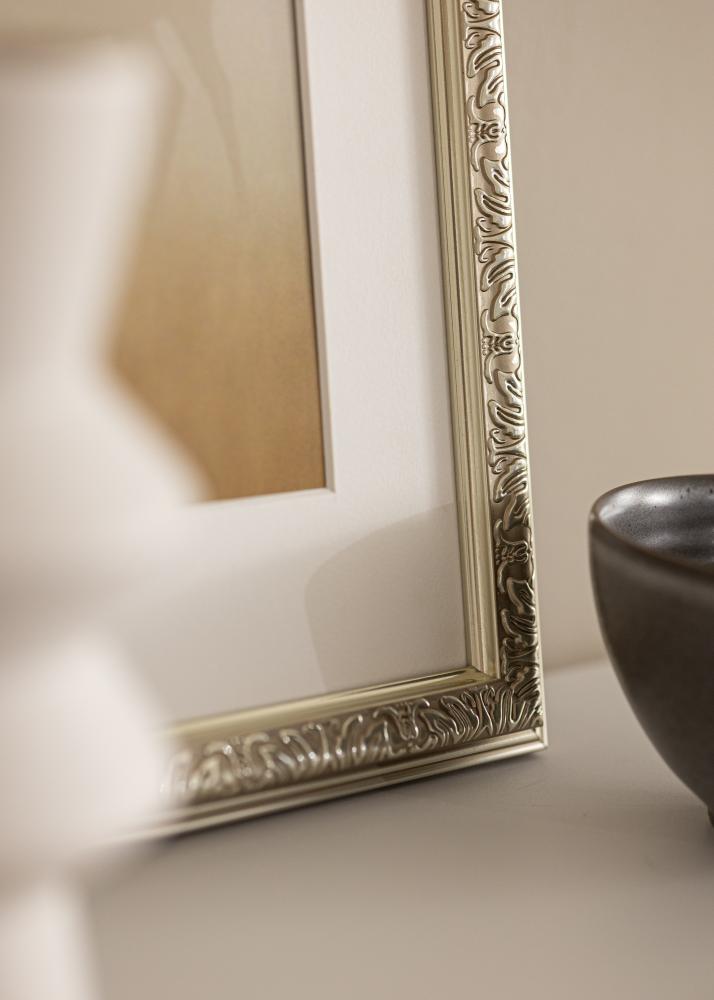 Nostalgia je elegantan srebrni okvir u retro stilu s lijepim ukrasima. Odgovara kada tražite široki retro okvir za vaše najljepše fotografije.