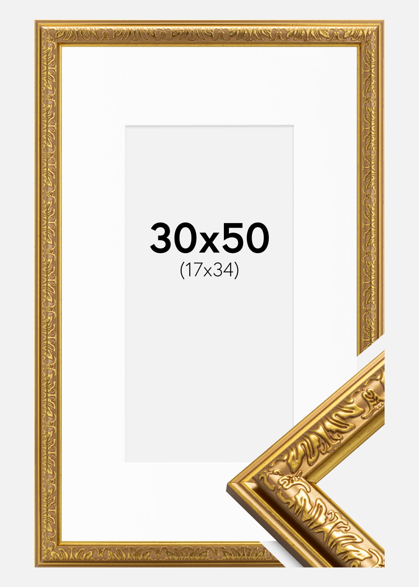 Okvir Nostalgia Zlato 30x50 cm - Paspartu Bijelo 18x35 cm