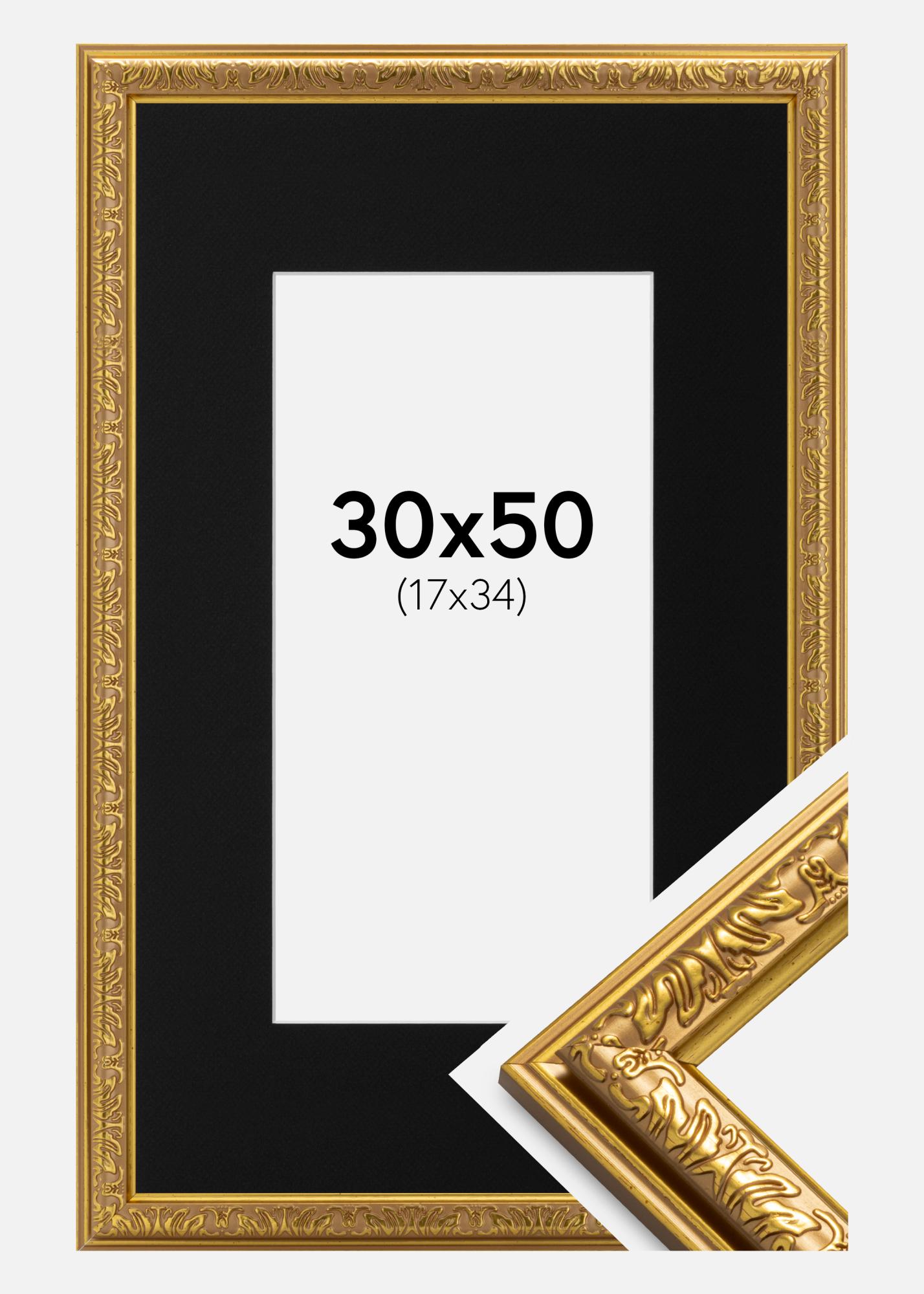 Okvir Nostalgia Zlato 30x50 cm - Paspartu Crno 18x35 cm