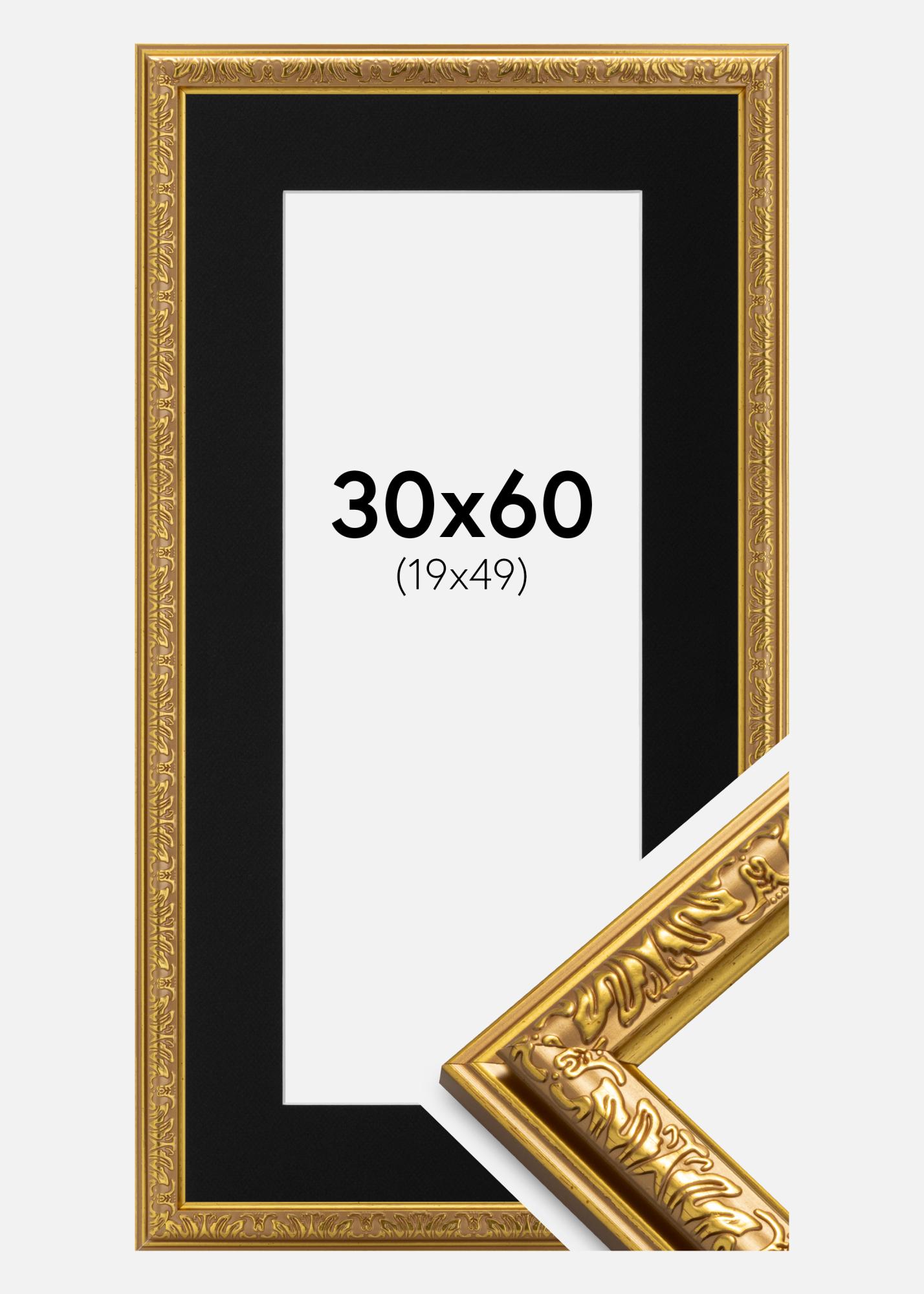 Okvir Nostalgia Zlato 30x60 cm - Paspartu Crno 20x50 cm