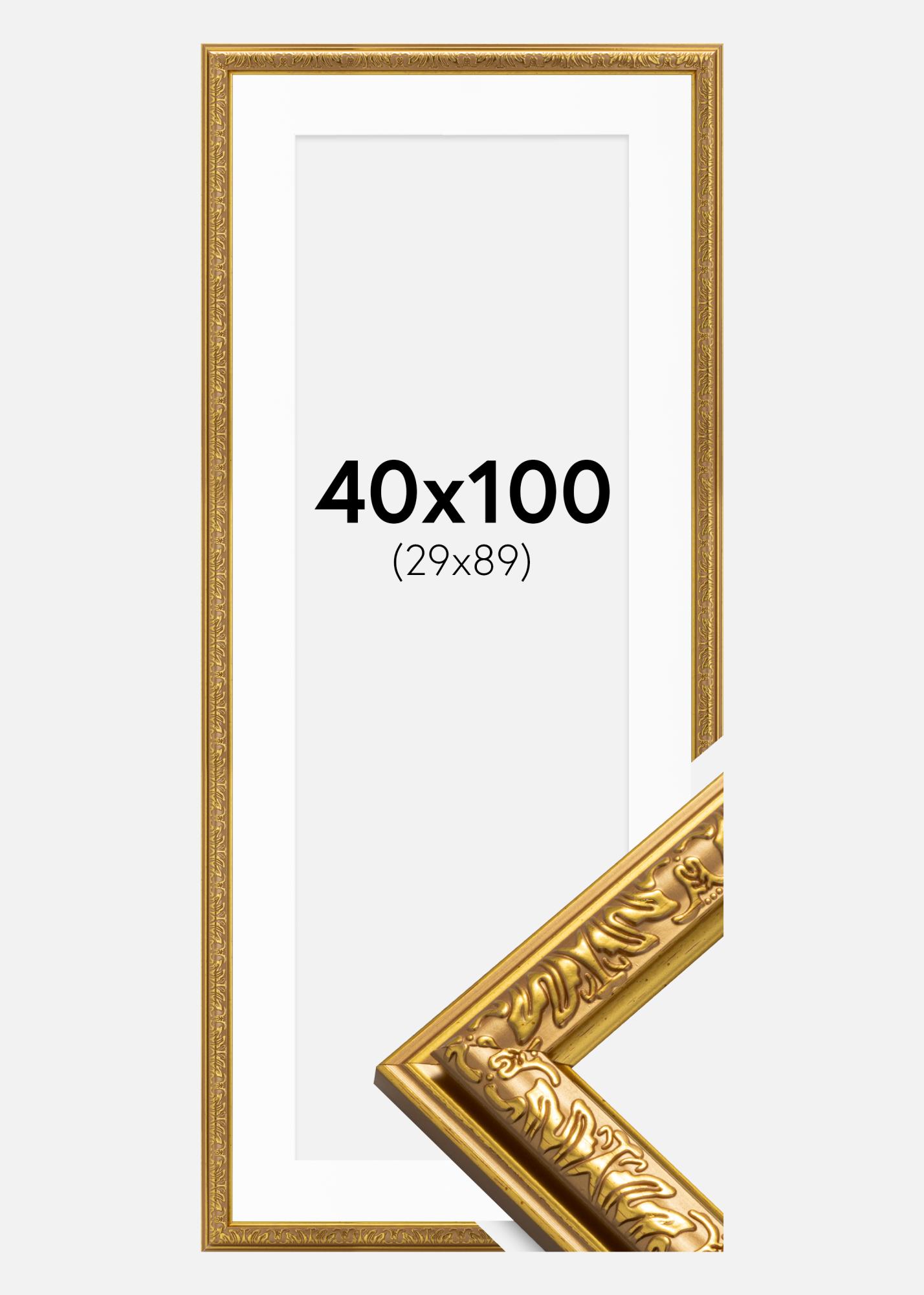 Okvir Nostalgia Zlato 40x100 cm - Paspartu Bijelo 30x90 cm