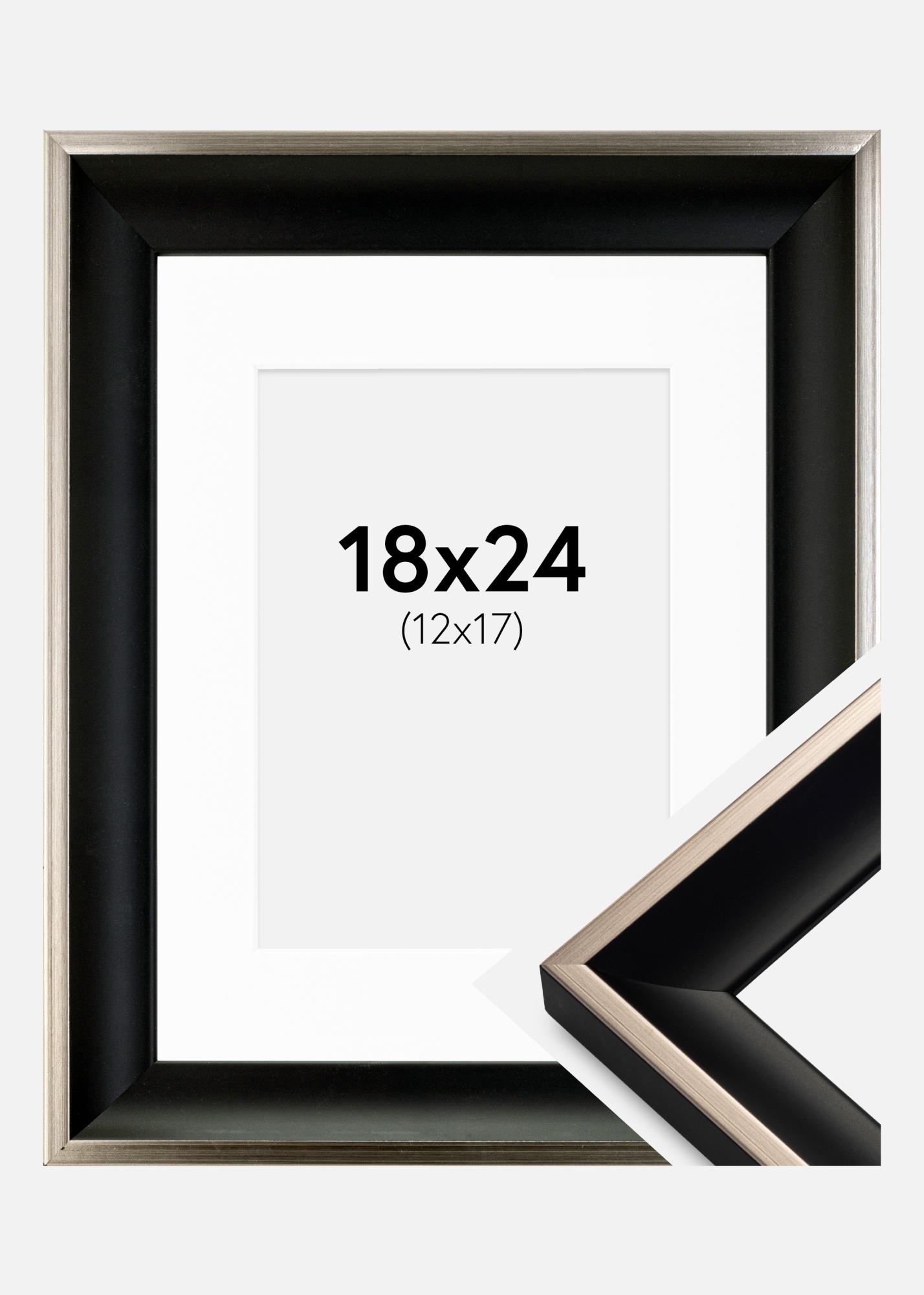 Okvir Öjaren Crno-Srebrno 18x24 cm - Paspartu Bijelo 13x18 cm