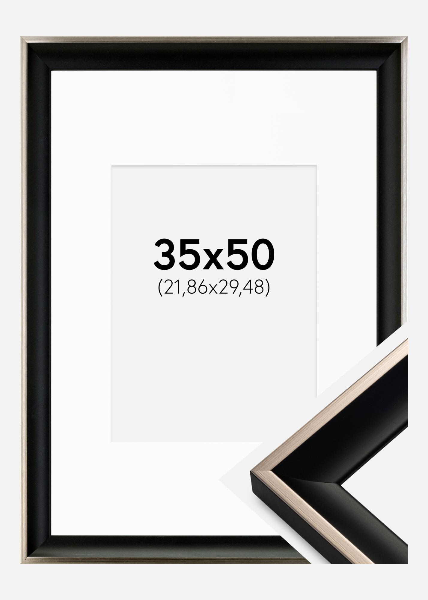 Okvir Öjaren Crno-Srebrno 35x50 cm - Paspartu Bijelo 9x12 inches