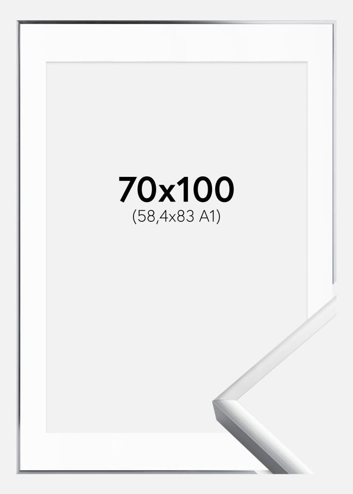 Okvir Plakat Frame Aluminum Srebro 70x100 cm - Paspartu Bijelo 59,4x84 cm (A1)