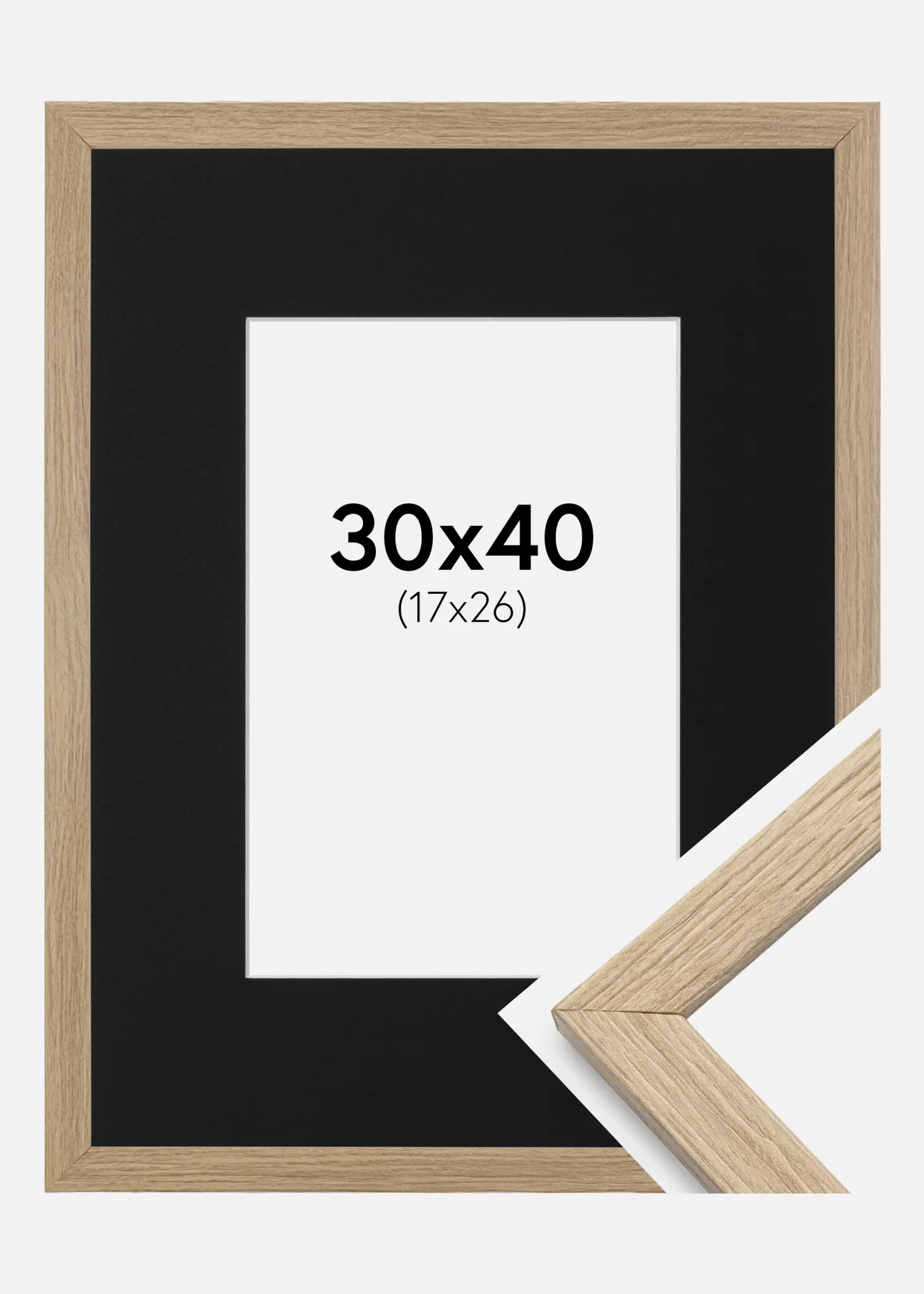 Okvir Profinjeni Hrast 30x40 cm - Paspartu Crno 18x27 cm