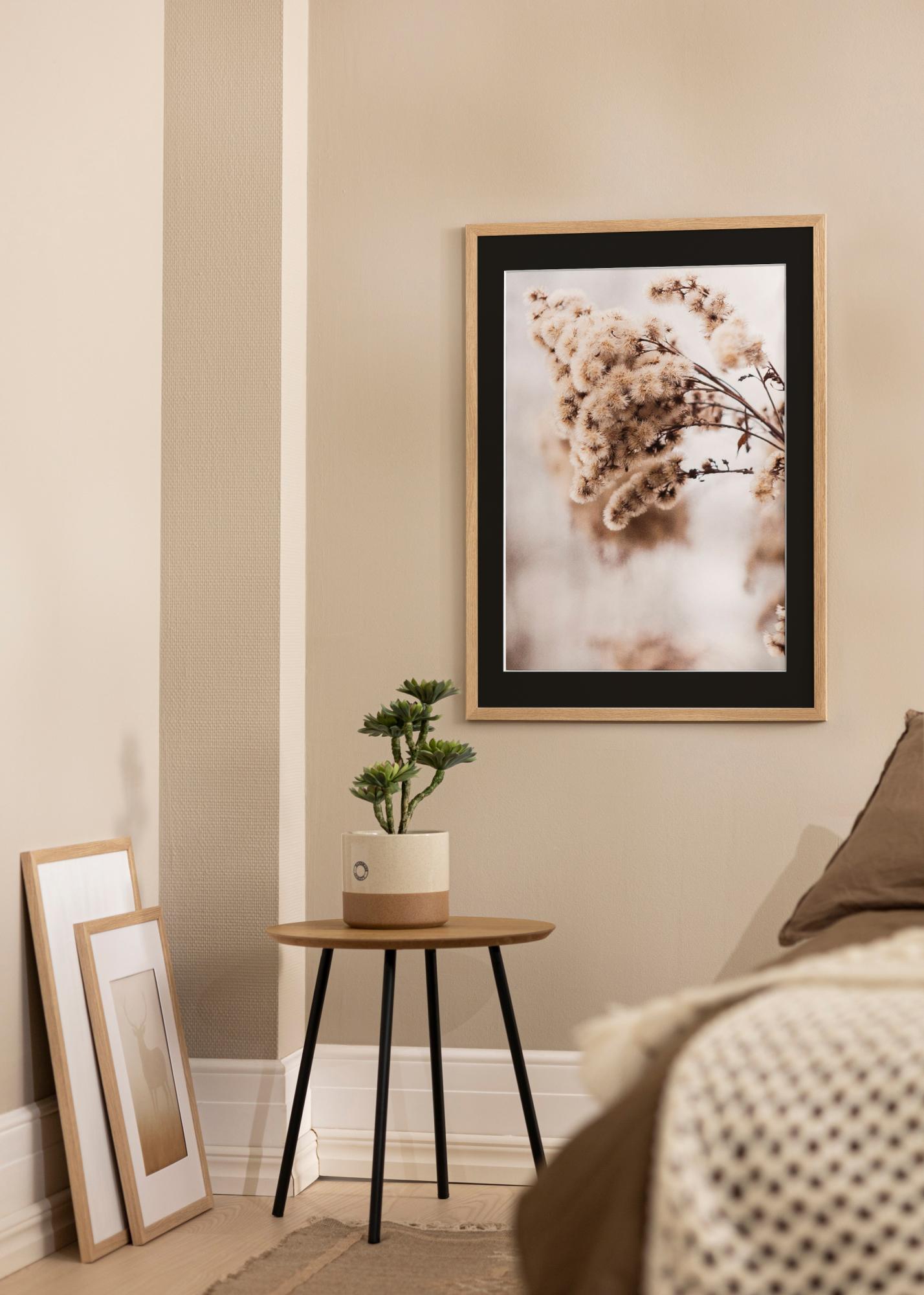 Doživite umjetnost na novi način s našim elegantnim okvirom s passepartoutom. Crni passepartout pruža jedinstveno uokvirivanje i dubinu vašoj slici veličine 37x46 cm, pojačavajući njezin izražaj i kontraste boja. Drvena boja okvira, s mat završetkom, upotpunjuje svaki motiv i stvara sofisticiran izgled u vašem domu.