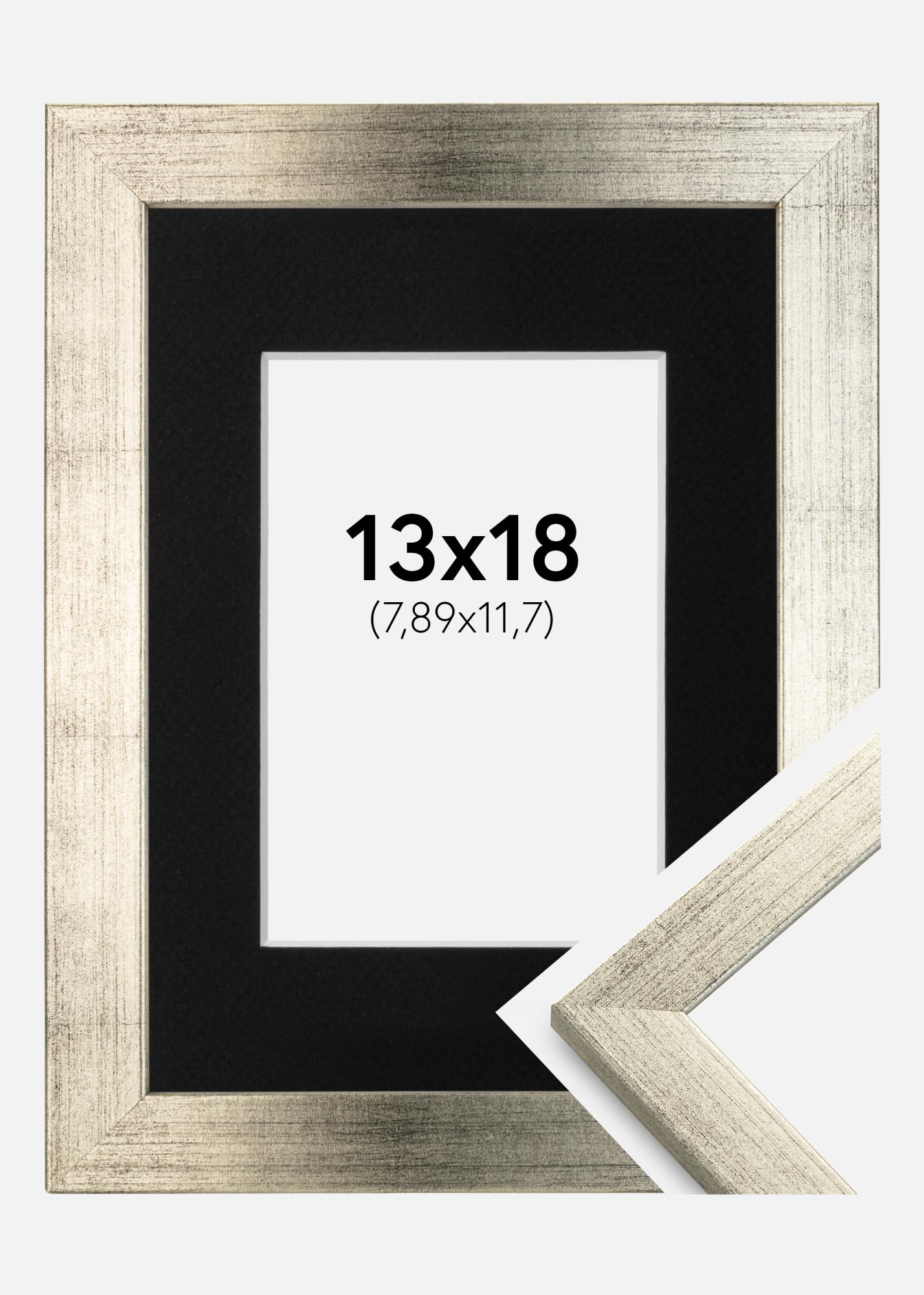 Okvir Profinjeni Srebro 13x18 cm - Paspartu Crno 3,5x5 inches