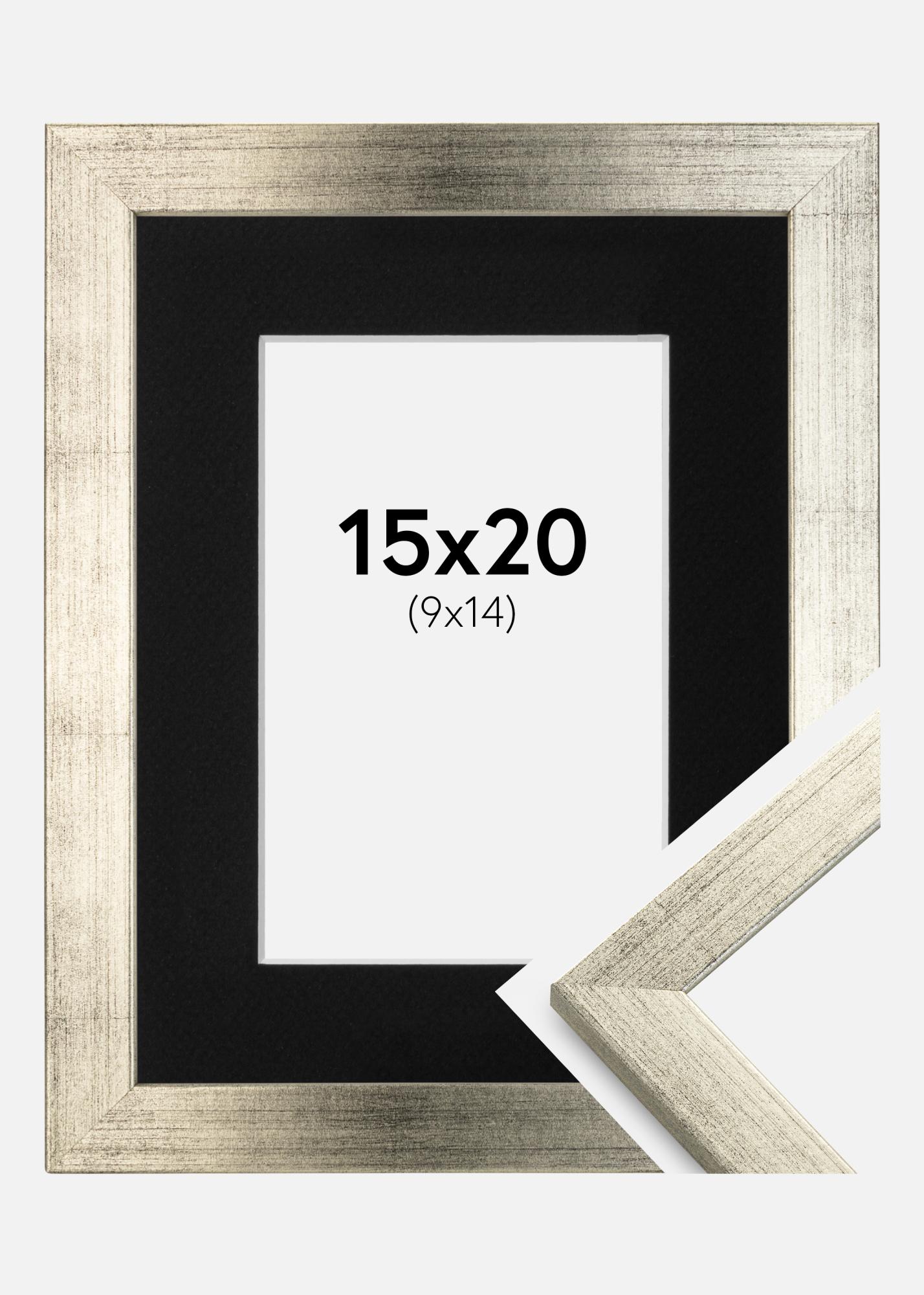 Okvir Profinjeni Srebro 15x20 cm - Paspartu Crno 10x15 cm