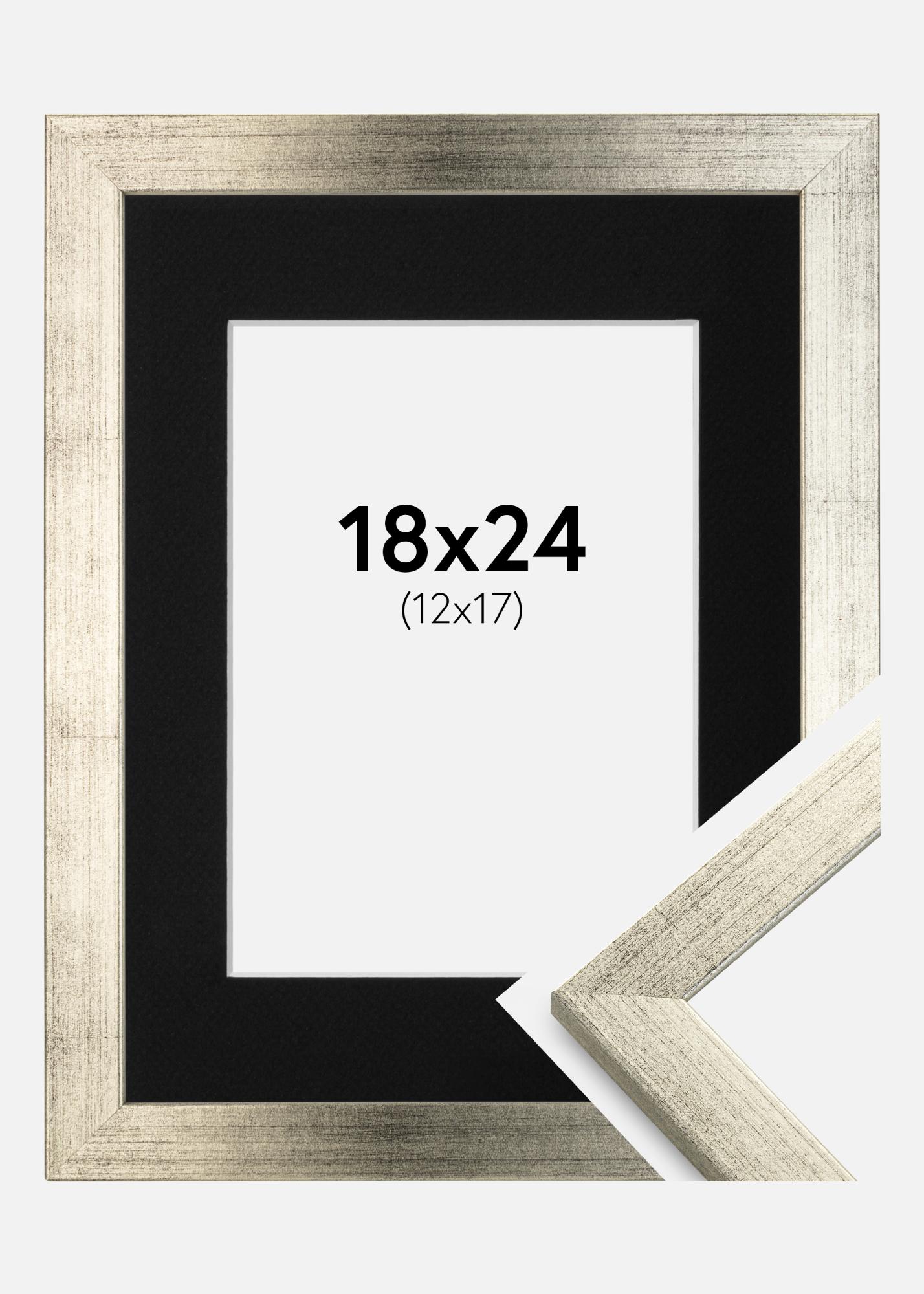 Okvir Profinjeni Srebro 18x24 cm - Paspartu Crno 13x18 cm
