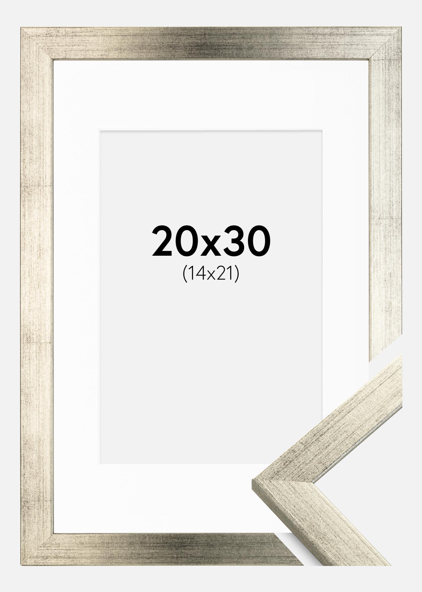 Okvir Profinjeni Srebro 20x30 cm - Paspartu Bijelo 15x22 cm