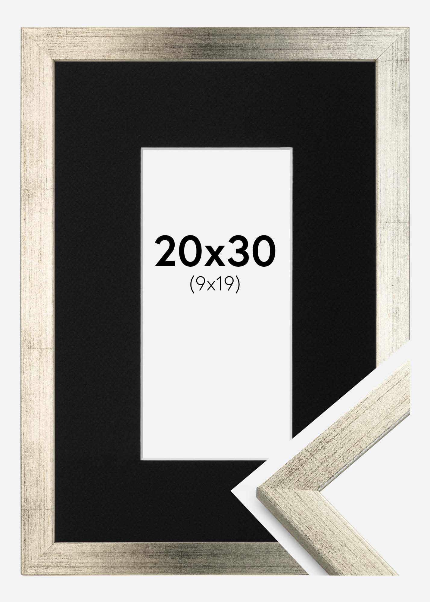 Okvir Profinjeni Srebro 20x30 cm - Paspartu Crno 10x20 cm